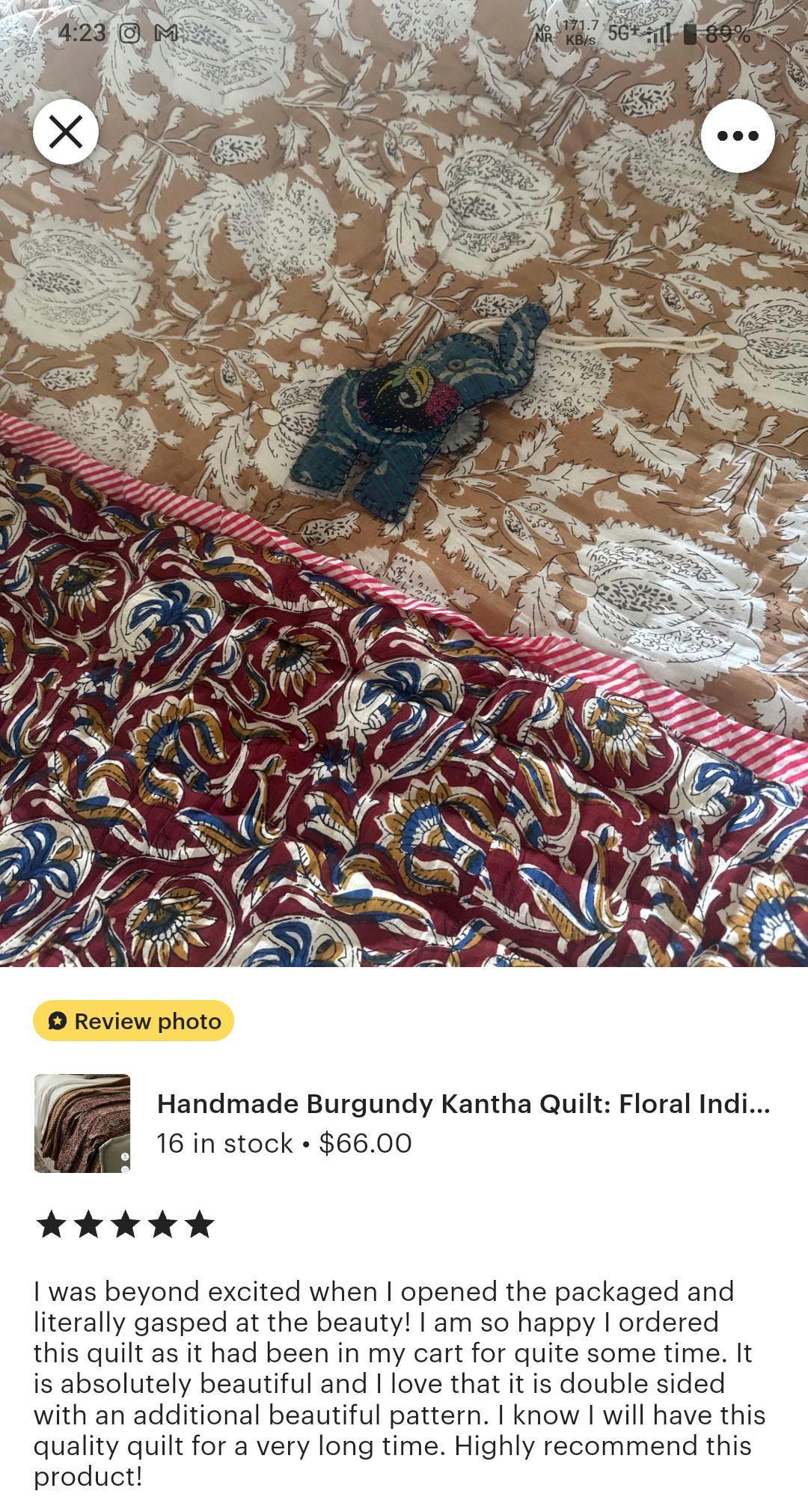 This is Two layer fabric (top side print and back side plain fabric ) hand work kantha👈🏻👈🏻👉🏻 Fabric:- 100 % cotton, Hand Printed Fabric, Vegetable Colors.