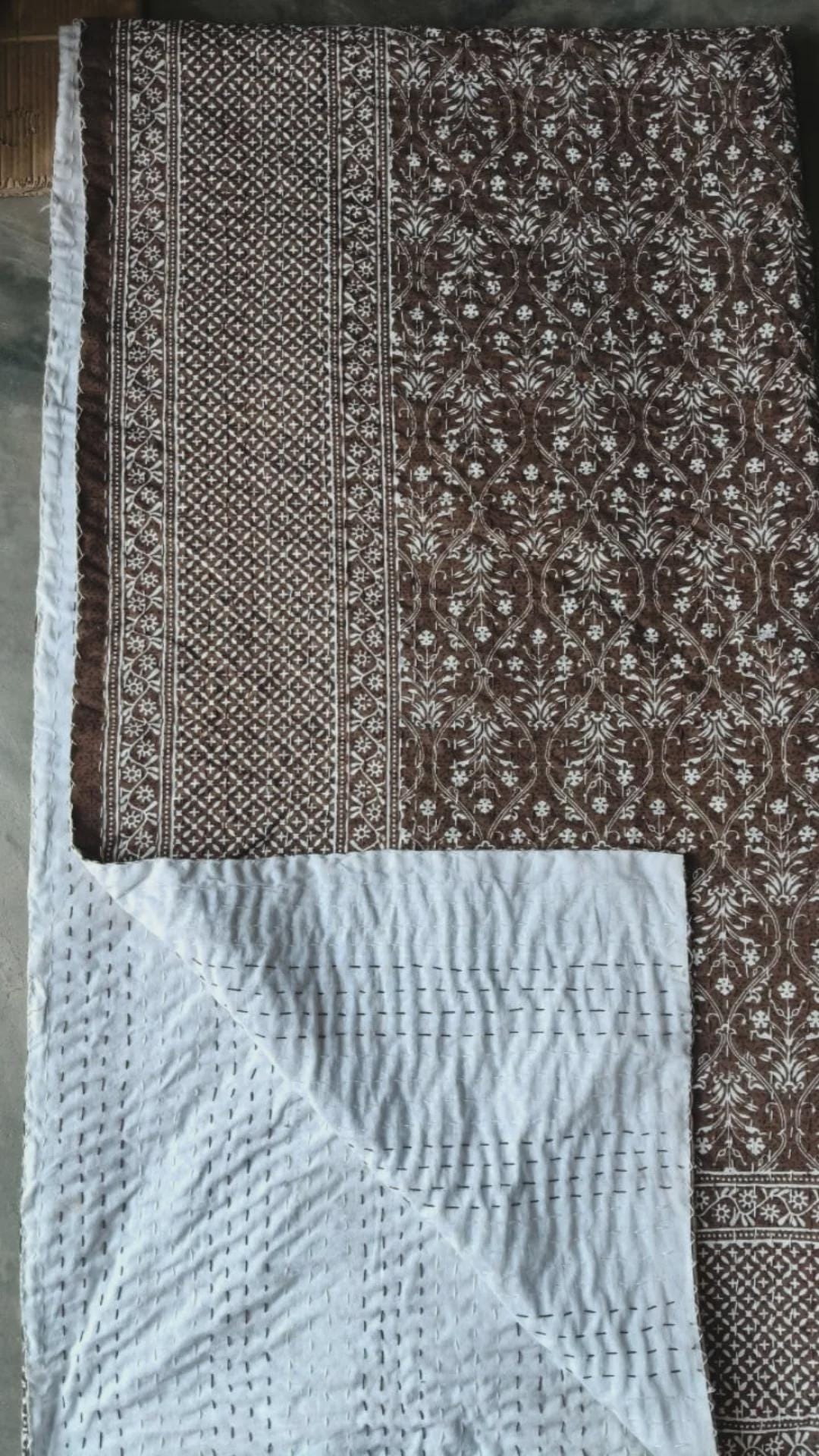 ❤️❤️ This fabric is made with just two layers of cotton which has been quilted together with little stitches known as kantha