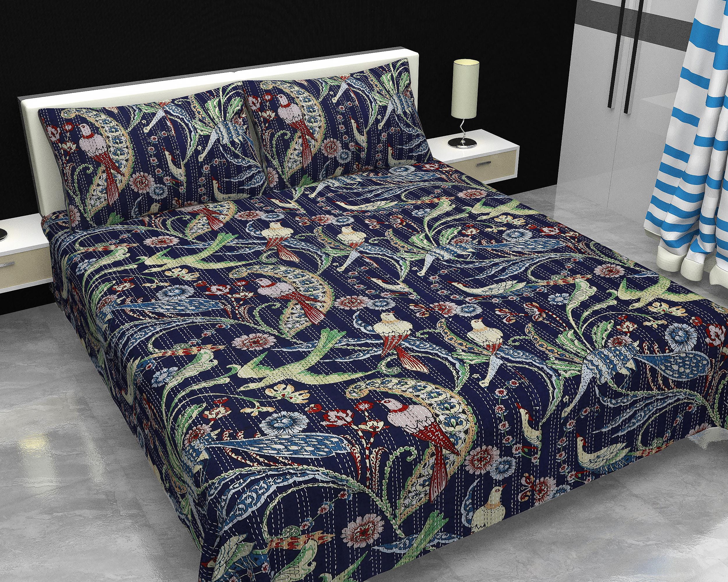 Beautiful bedspread in a stunning Cotton Kantha Bedspread Gudari,