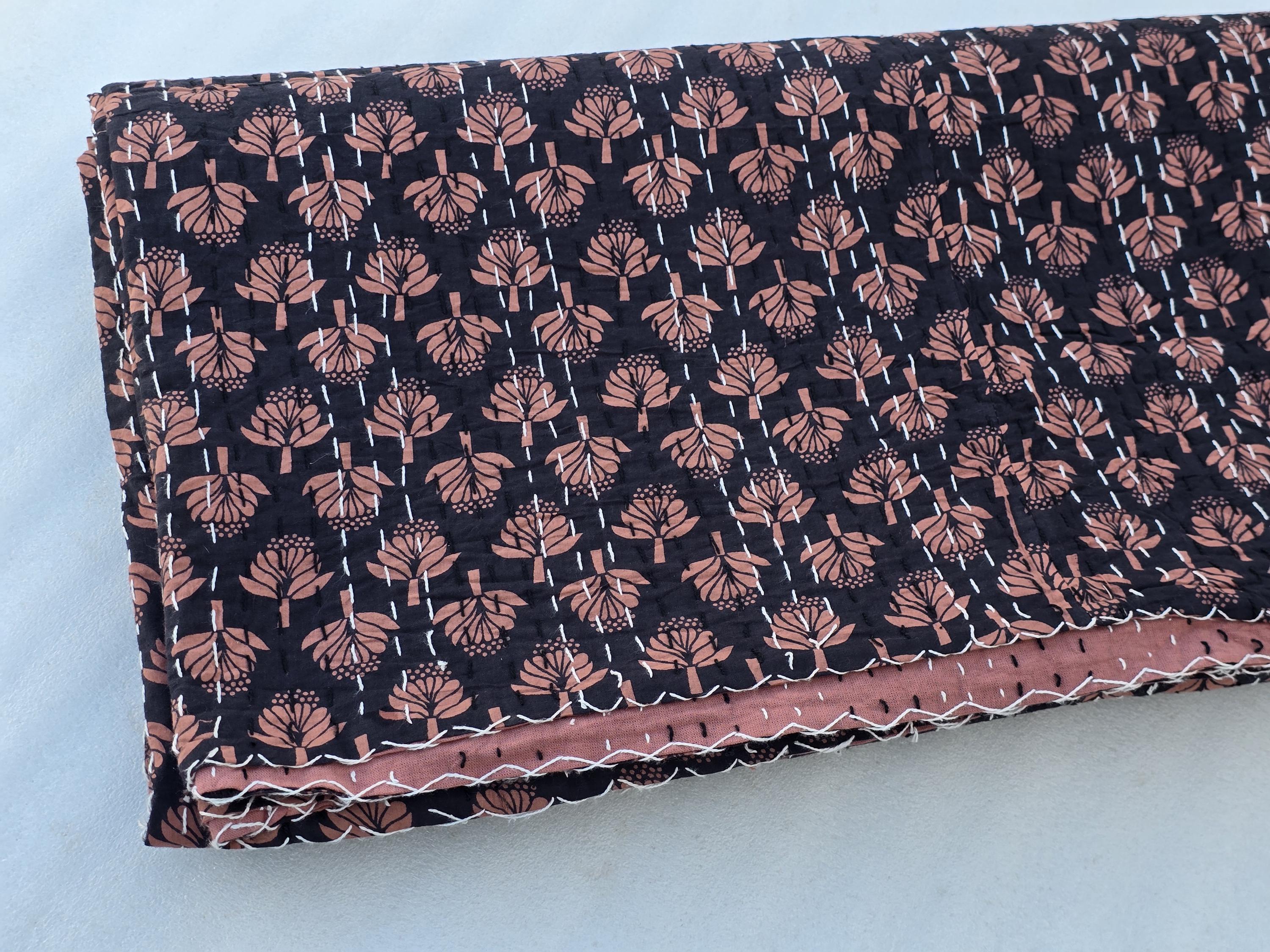 100% cotton and hand Block print kantha quilted, creating a beautiful varied texture.