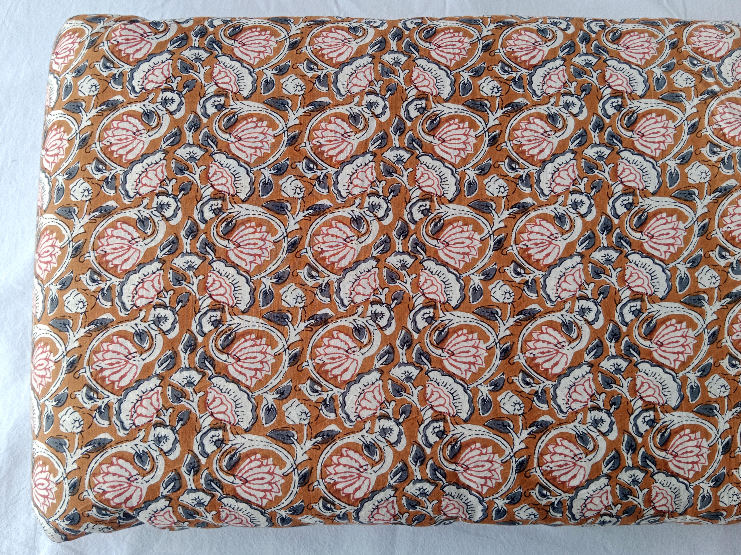 Hand Block Printed Cotton Fabric, Floral Print, Indian Textile