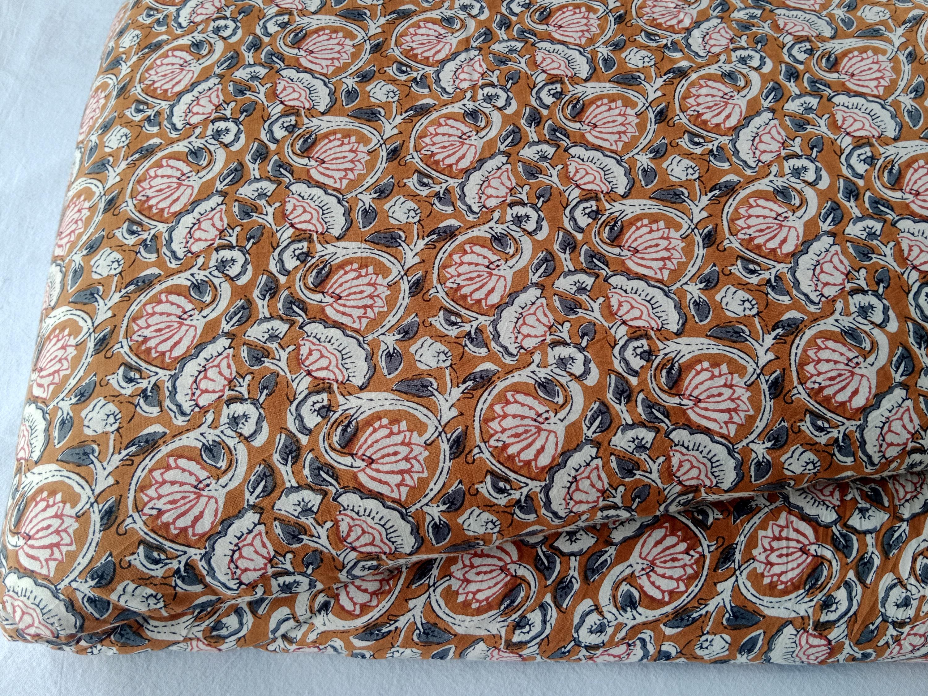 ๐Ÿ‘Œ๐Ÿ‘ŒThis floral print block print cotton fabric. The block print fabric is print by Vegetable dye. Fabric is light weight, so good to use for Tunic, home dรฉcor, summer curtain, kids dress, women's clothing, quilting cotton and many more.