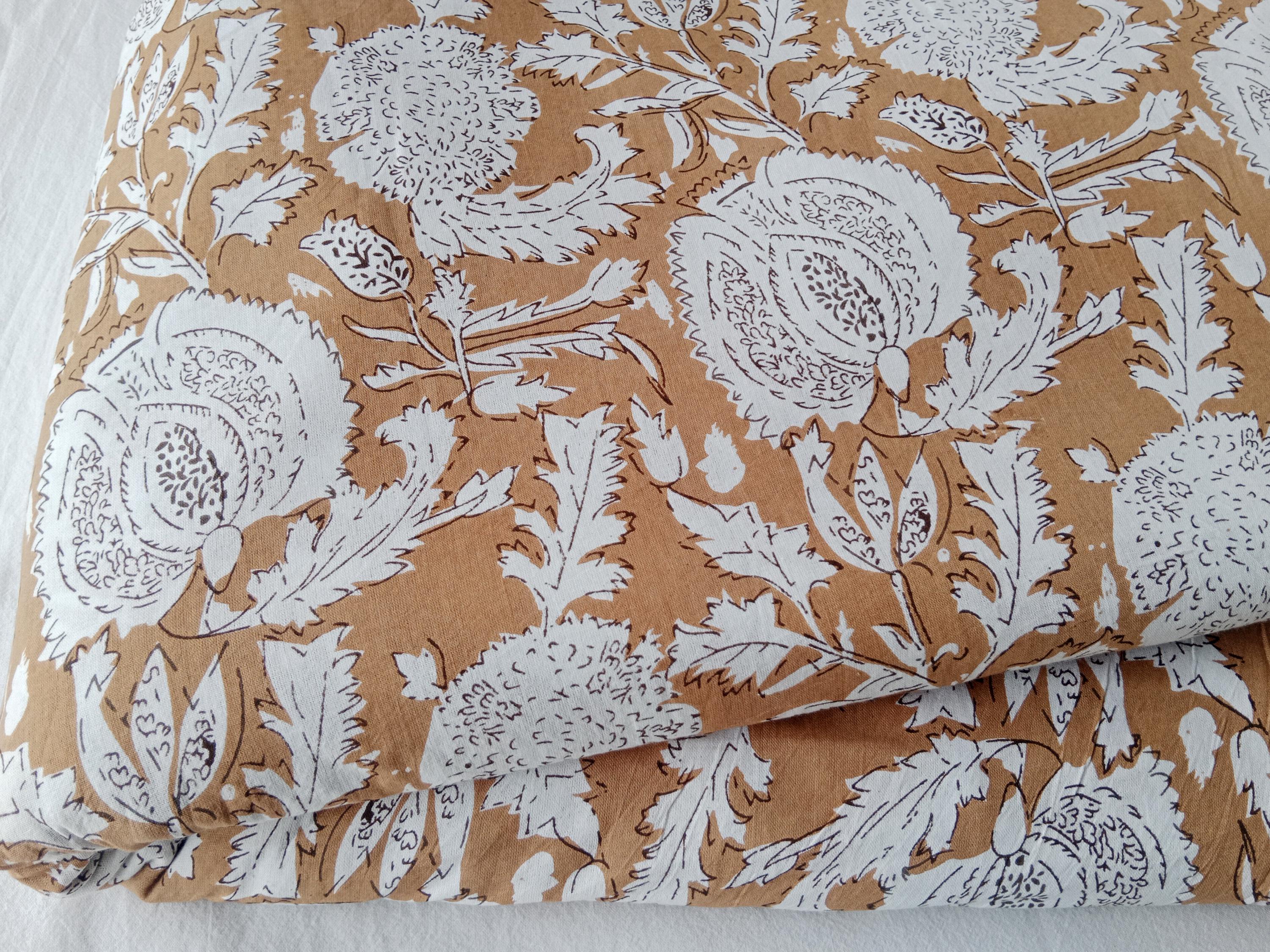 ๐๐This floral print block print cotton fabric. The block print fabric is print by Vegetable dye. Fabric is light weight, so good to use for Tunic, home dรฉcor, summer curtain, kids dress, women's clothing, quilting cotton and many more.