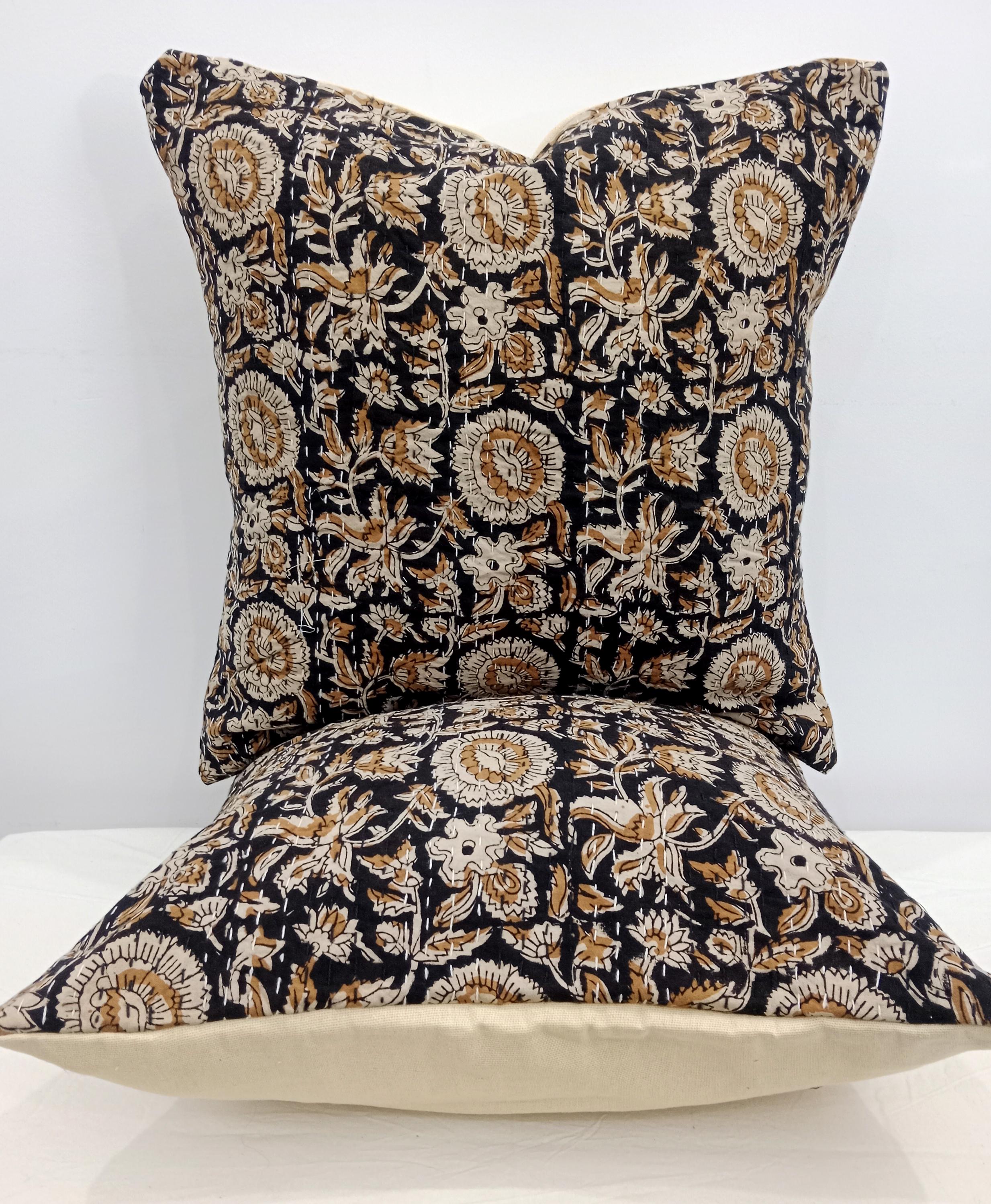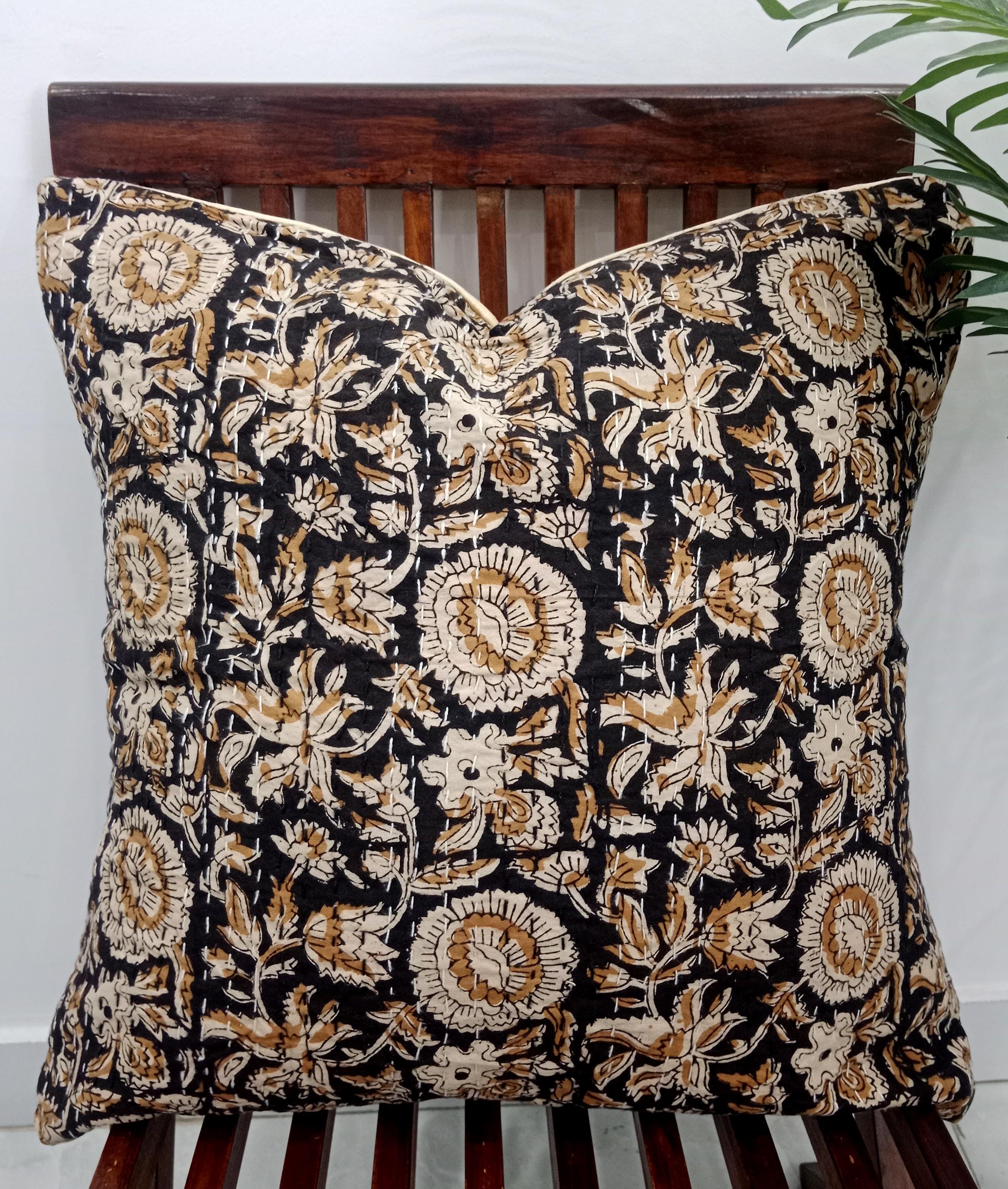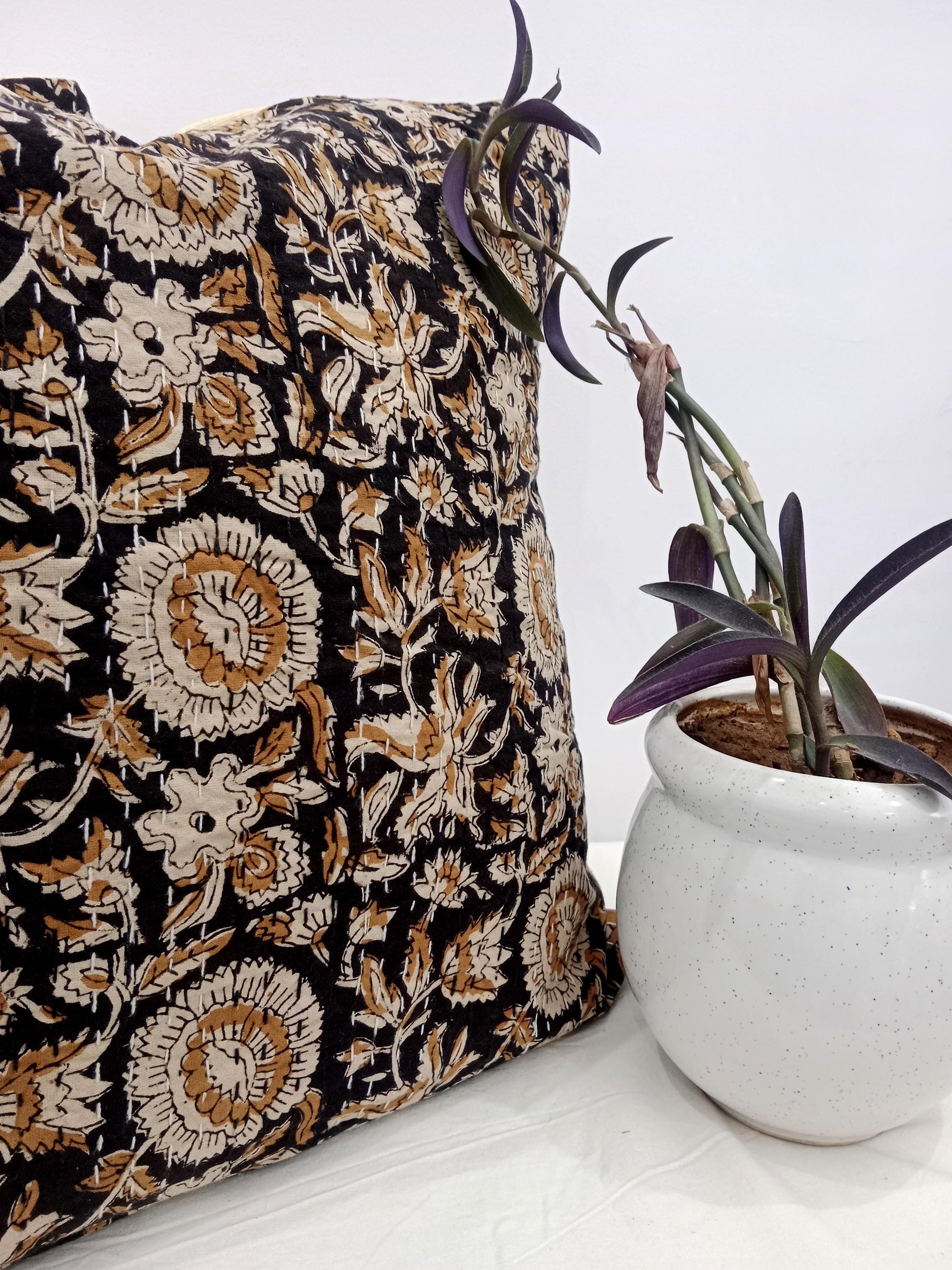 ๐Indian ethnic hand block printed decorative throw pillow. Listing Includes set of 1 Pieces printed cotton cushion covers with Hand print. Traditionally, block printing was used to print fabrics. This process involves sketching and carving a design into a block of wood, applying ink or dye, and stamping it onto a finished cloth. Block printing differs from weaving, where patterns are woven into a fabric as it's created.