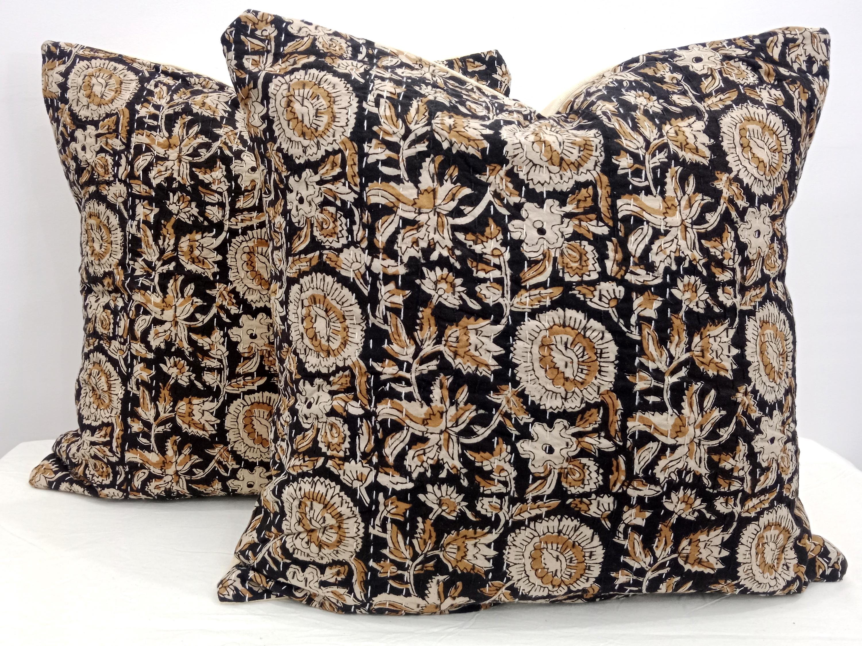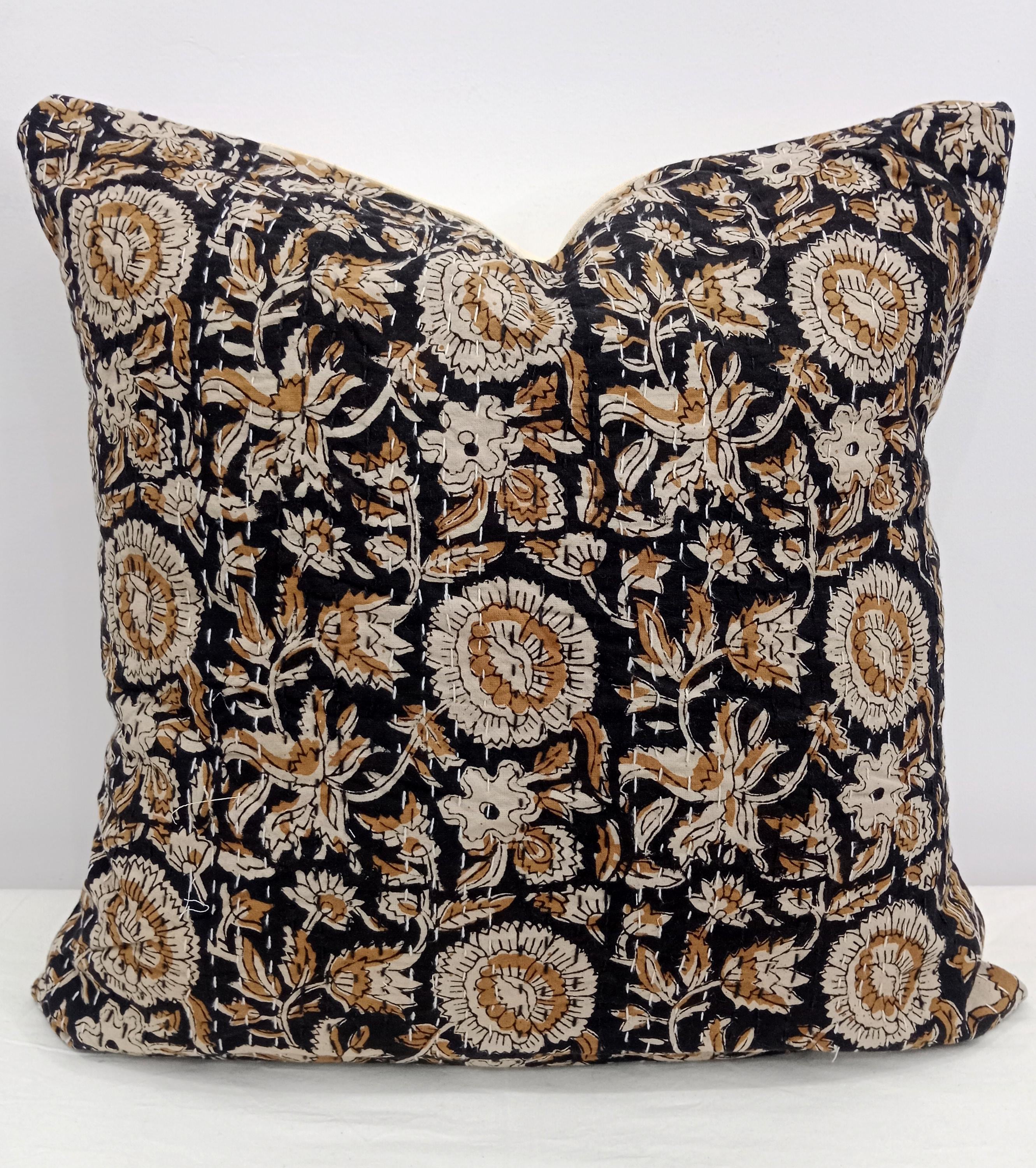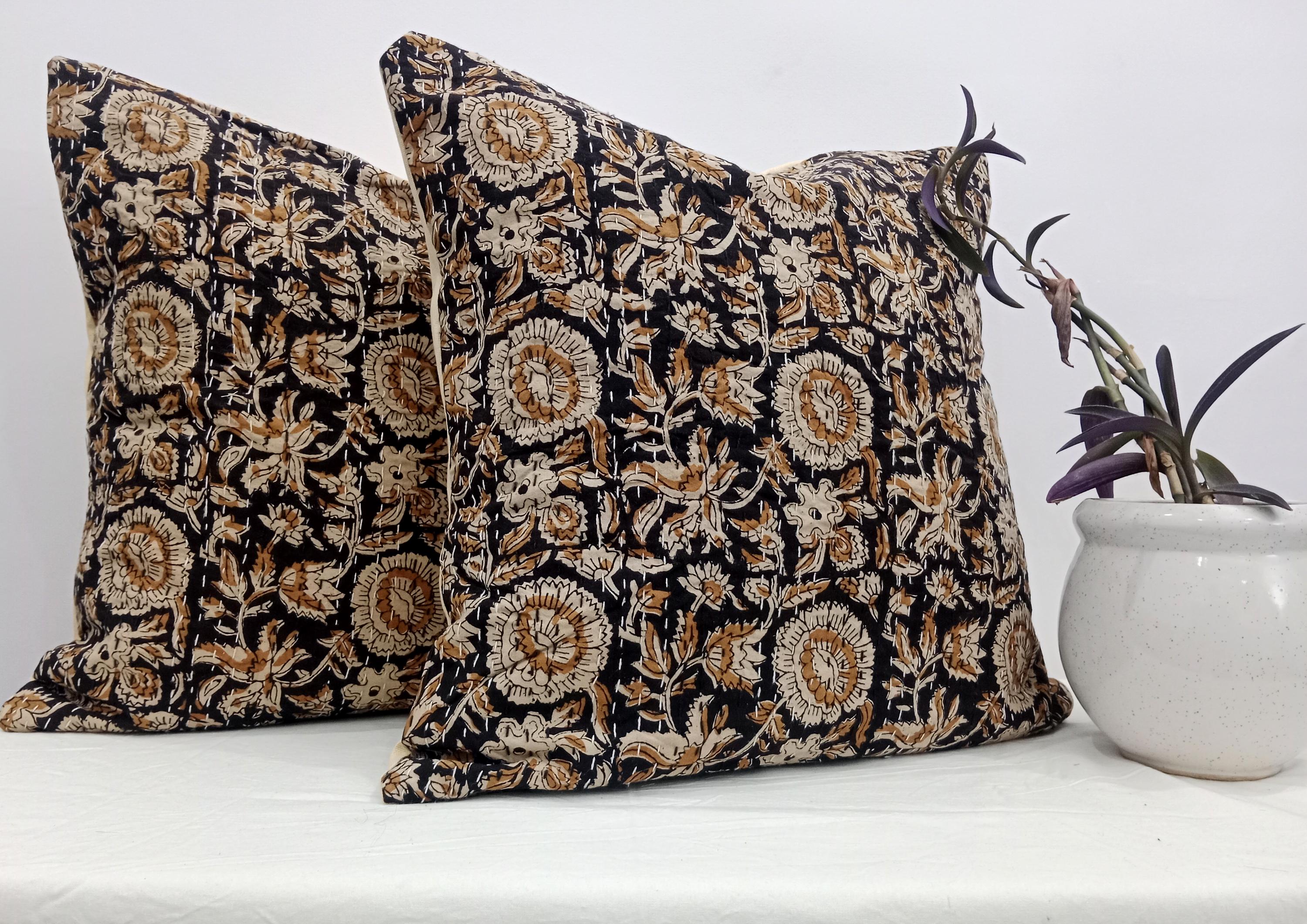 ๐Indian ethnic hand block printed decorative throw pillow. Listing Includes set of 1 Pieces printed cotton cushion covers with Hand print. Traditionally, block printing was used to print fabrics. This process involves sketching and carving a design into a block of wood, applying ink or dye, and stamping it onto a finished cloth. Block printing differs from weaving, where patterns are woven into a fabric as it's created.