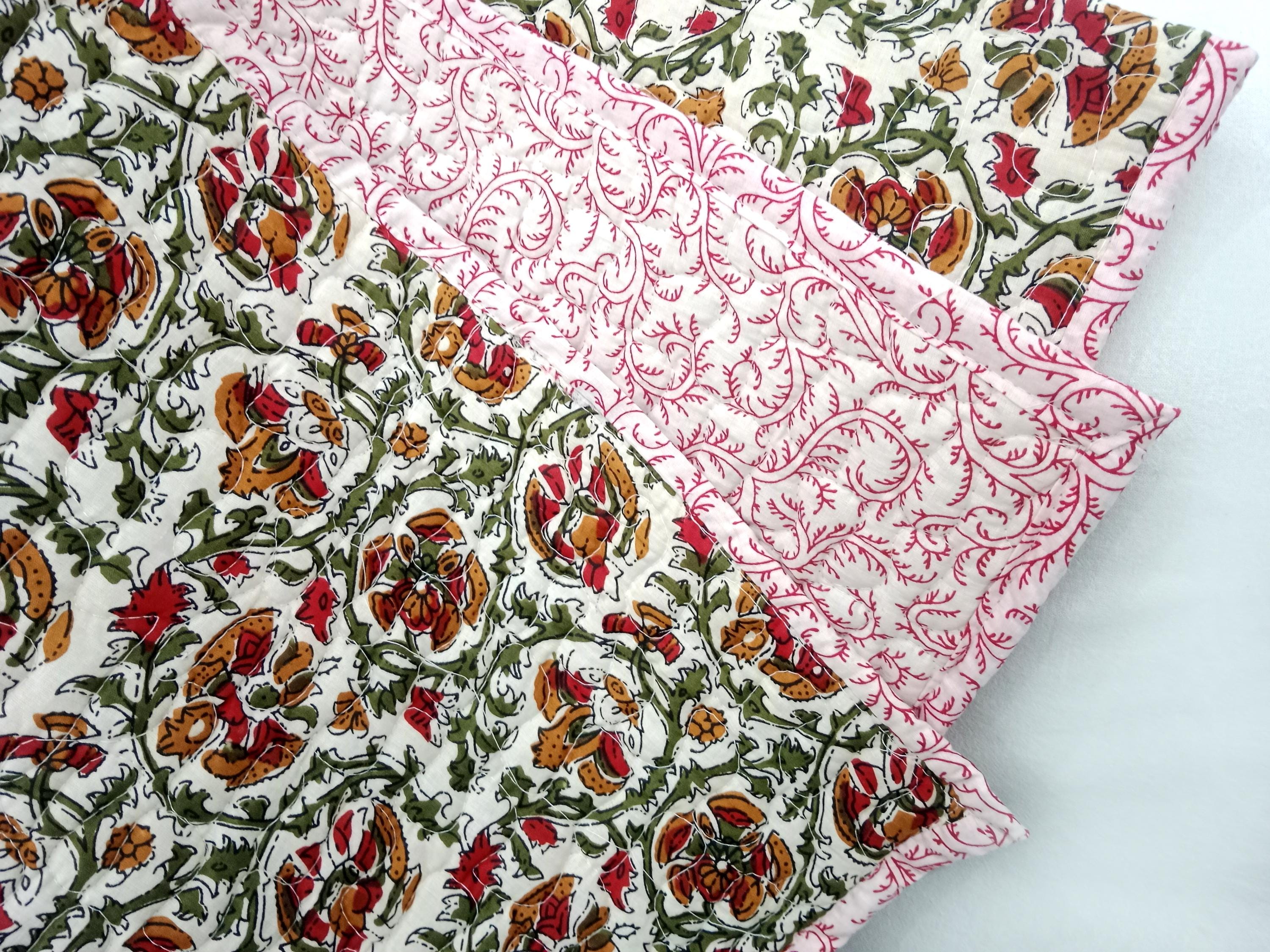 This fabric is made with just two layers of cotton which has been quilted together with little stitches known as kantha