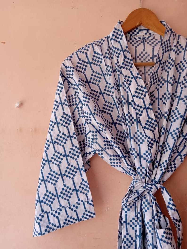 Luxury Soft Indian Kimono Robe for Women Dress | Cotton Floral Print Bathrobe & Nightwear Gown | Hand block Print Kaftan Gift For Her