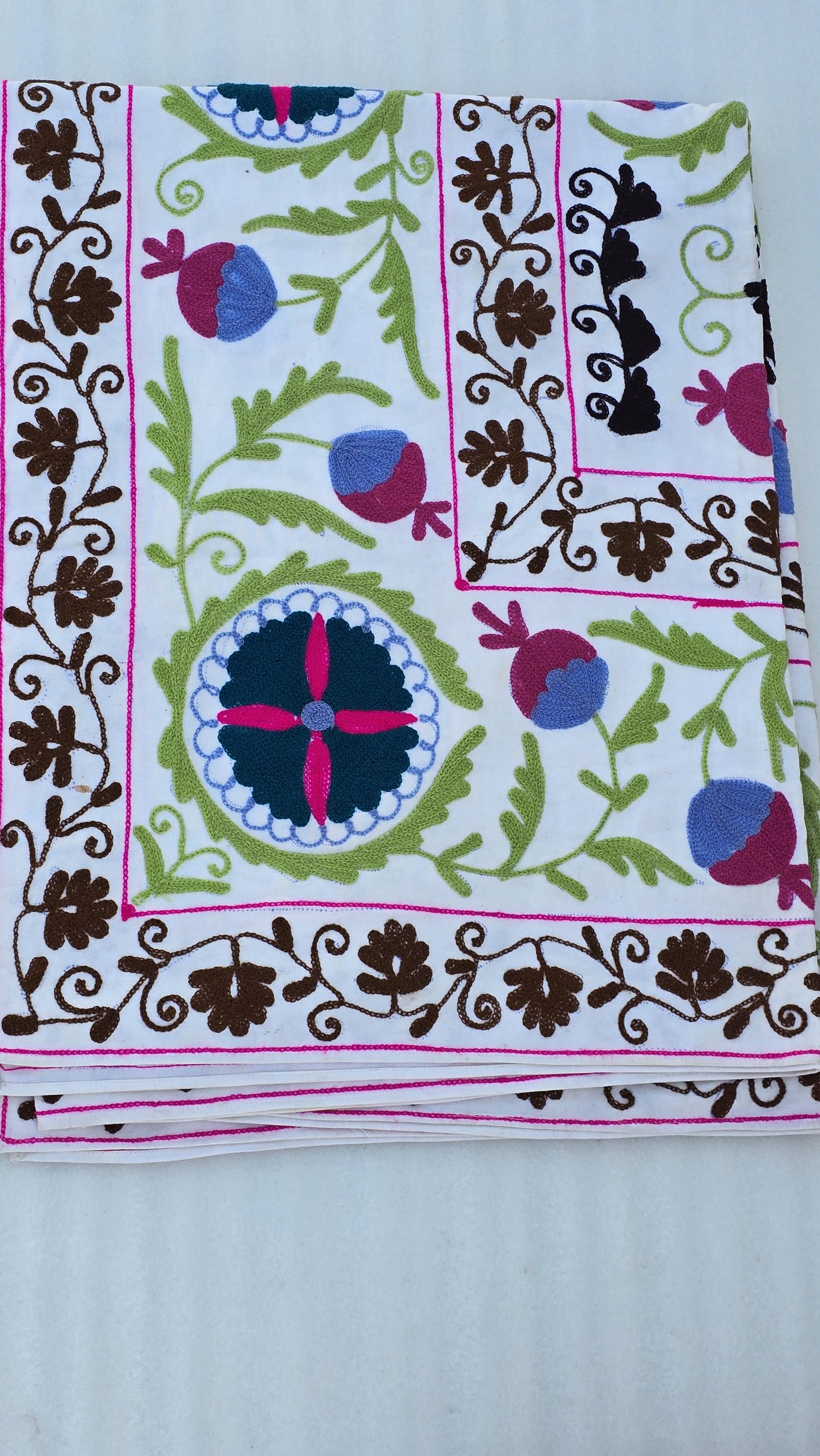 Uzbek embroidered tablecloth is fully hand embroidered and it is only one of its kind.