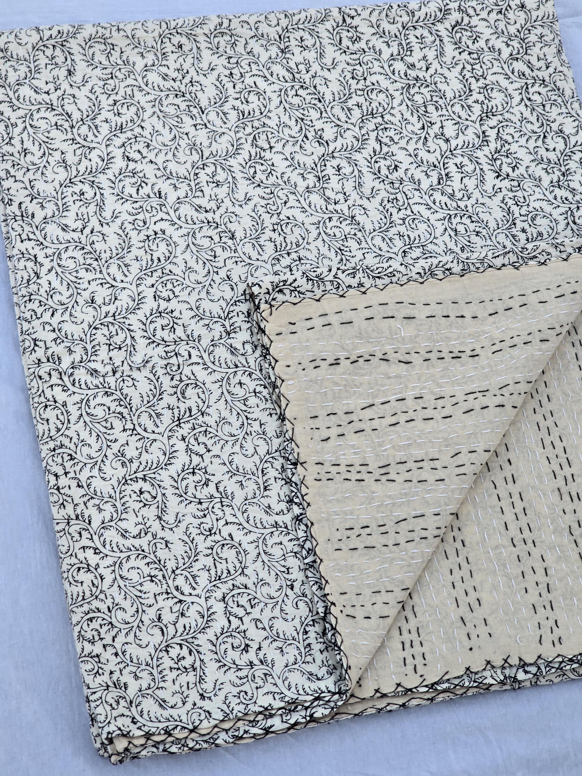 100% cotton and hand Block print kantha quilted, creating a beautiful varied texture.