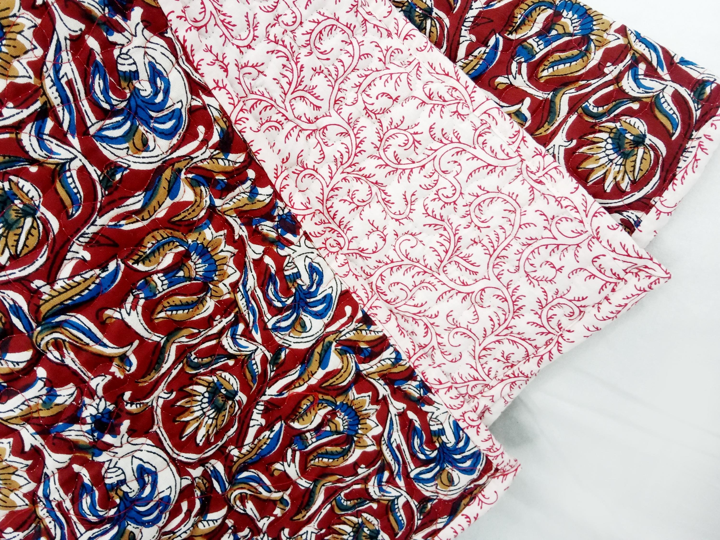 Handmade Burgundy Kantha Quilt: Indian Inspired Cotton Bedding