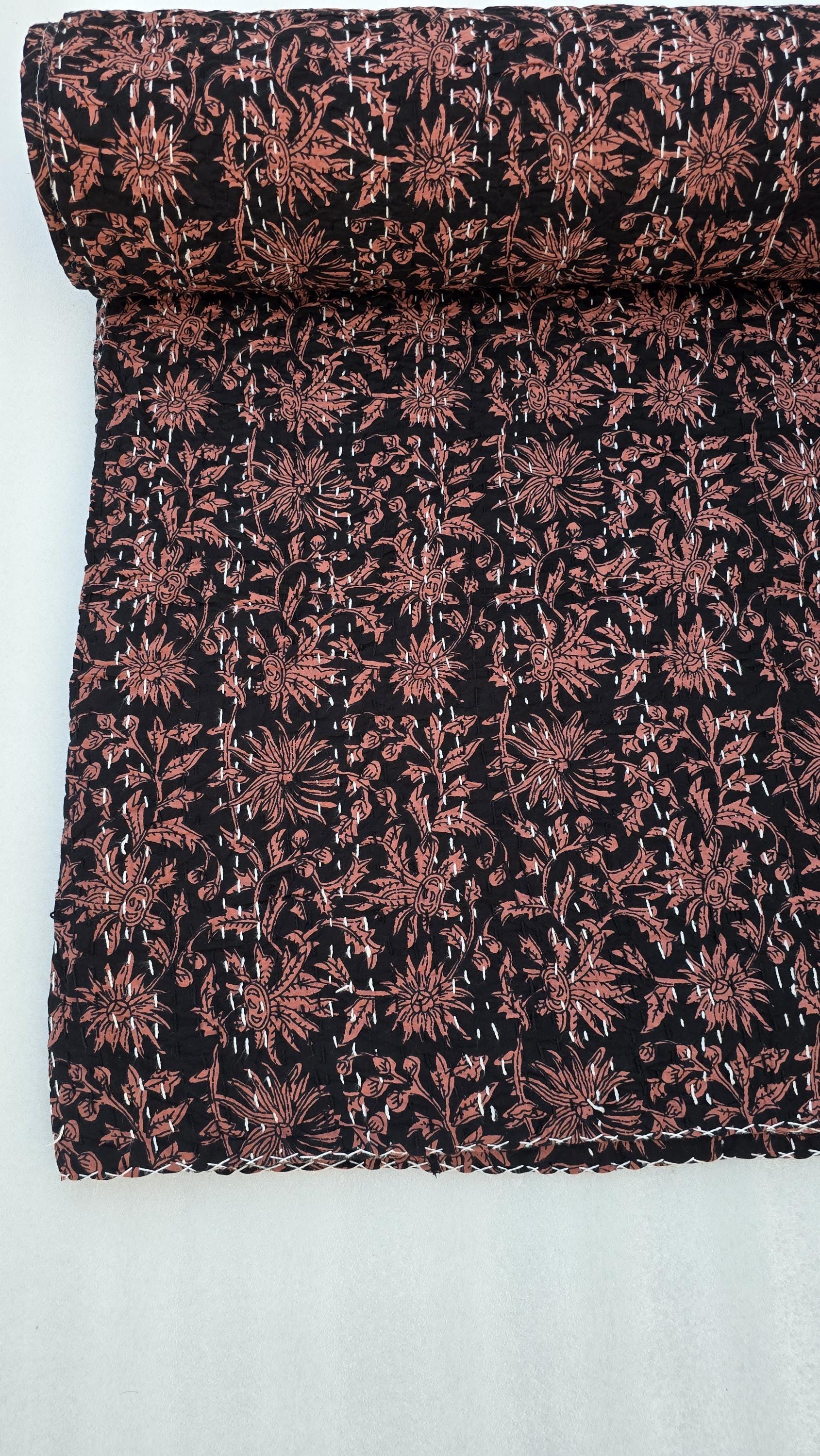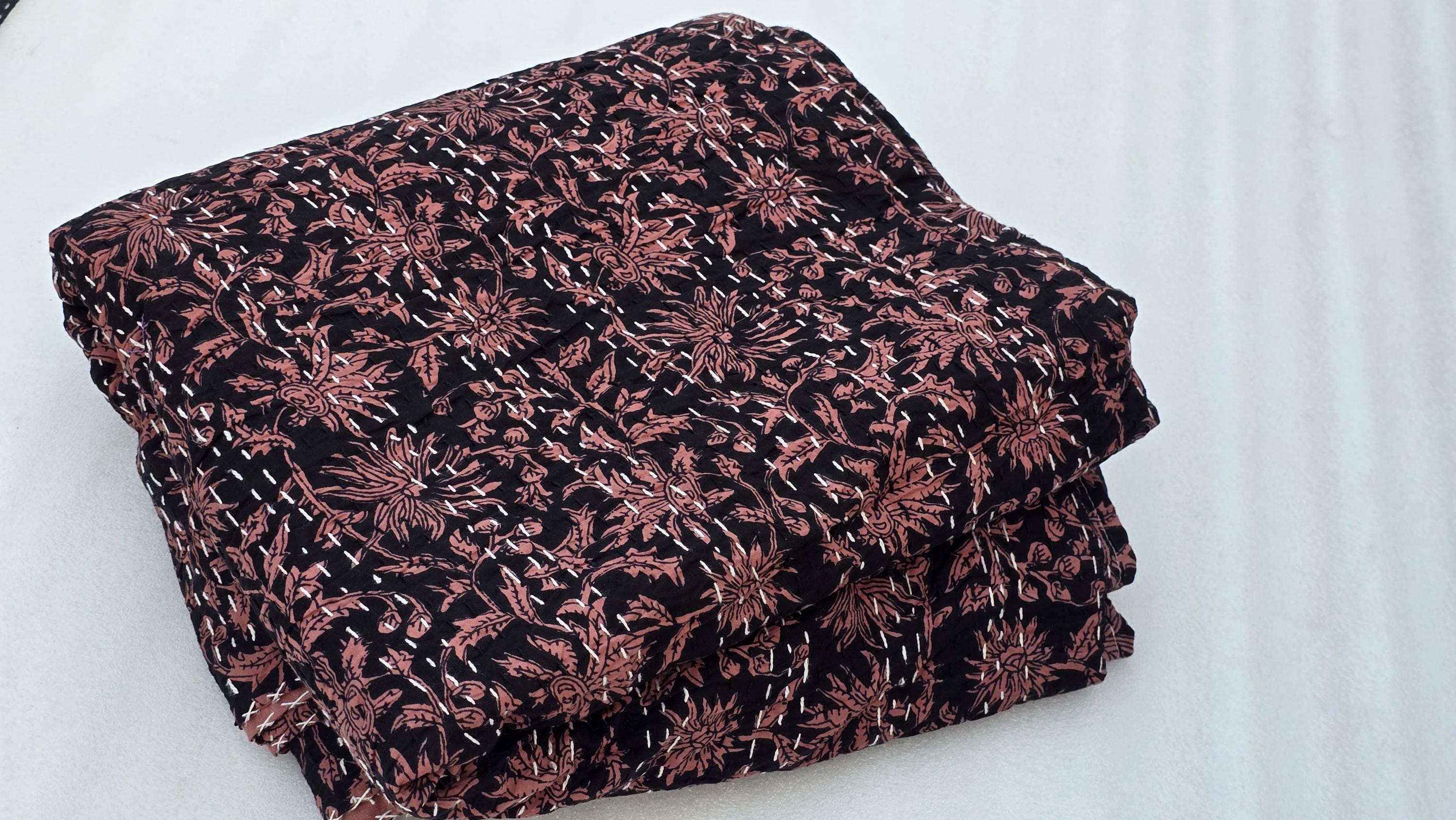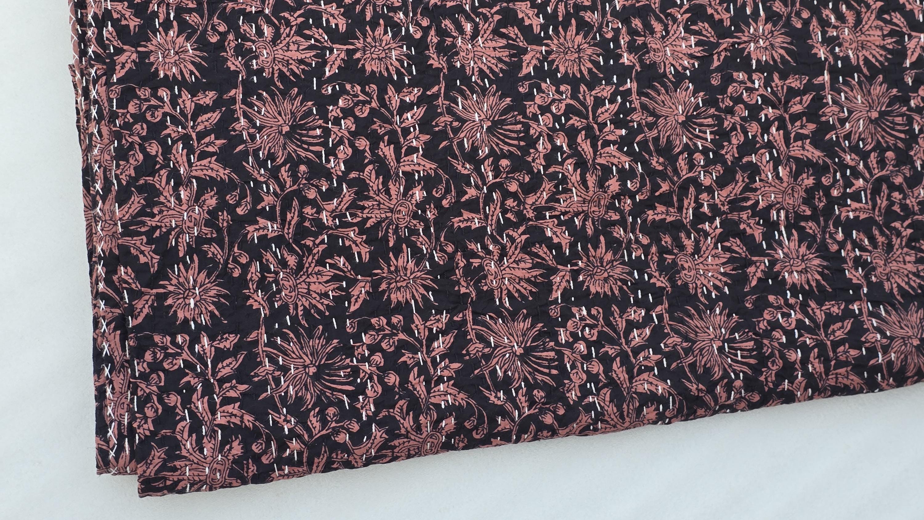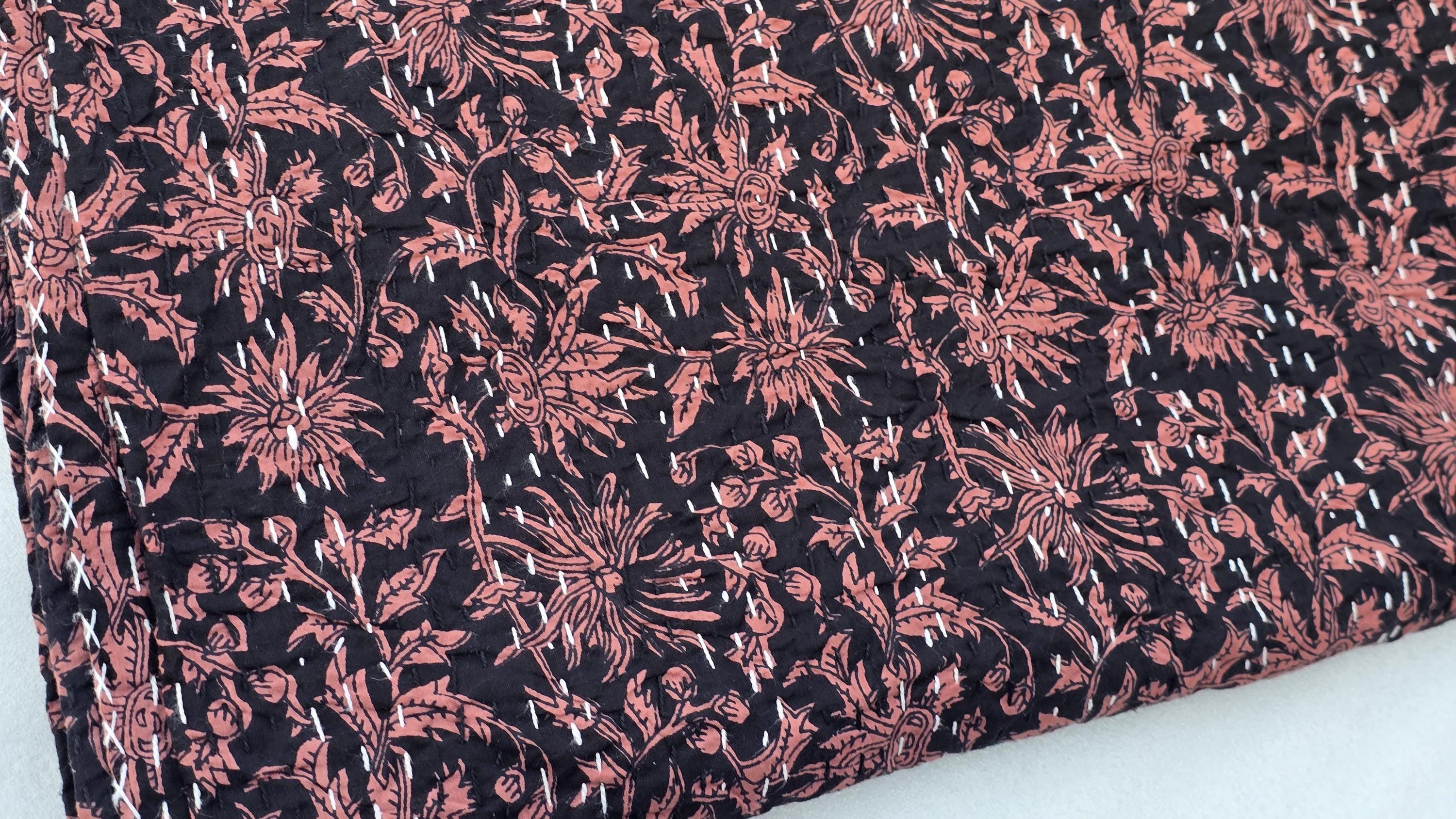 This fabric is made with just two layers of cotton which has been quilted together with little stitches known as kantha