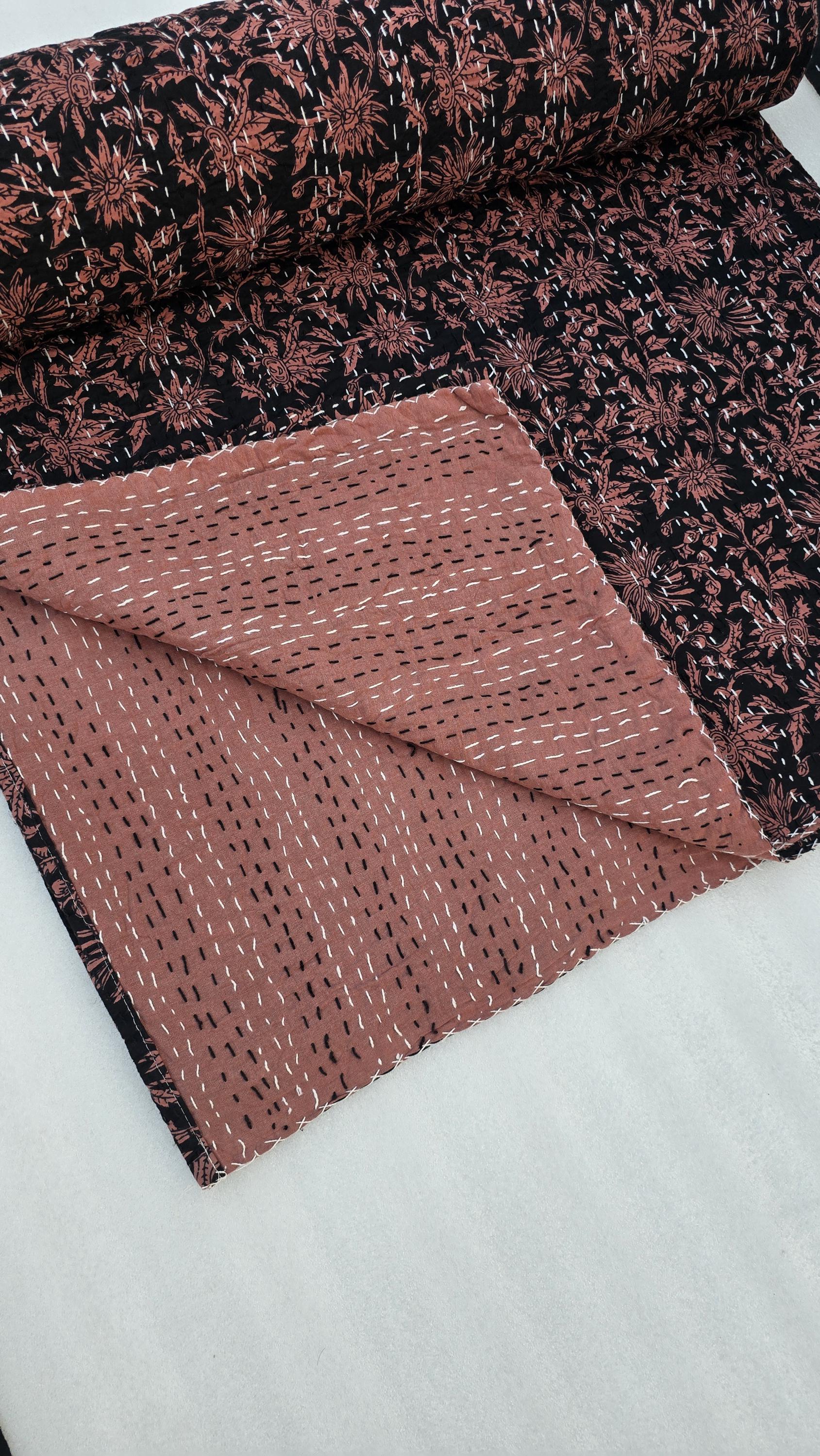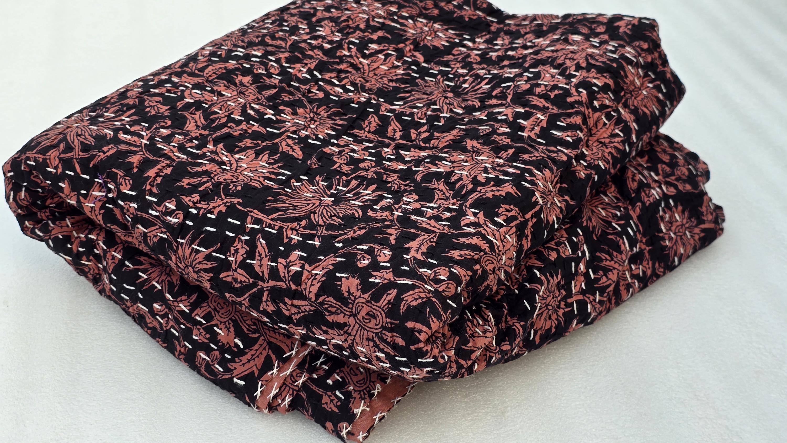 This is Two layer fabric (top side print and back side plain fabric ) hand work kantha