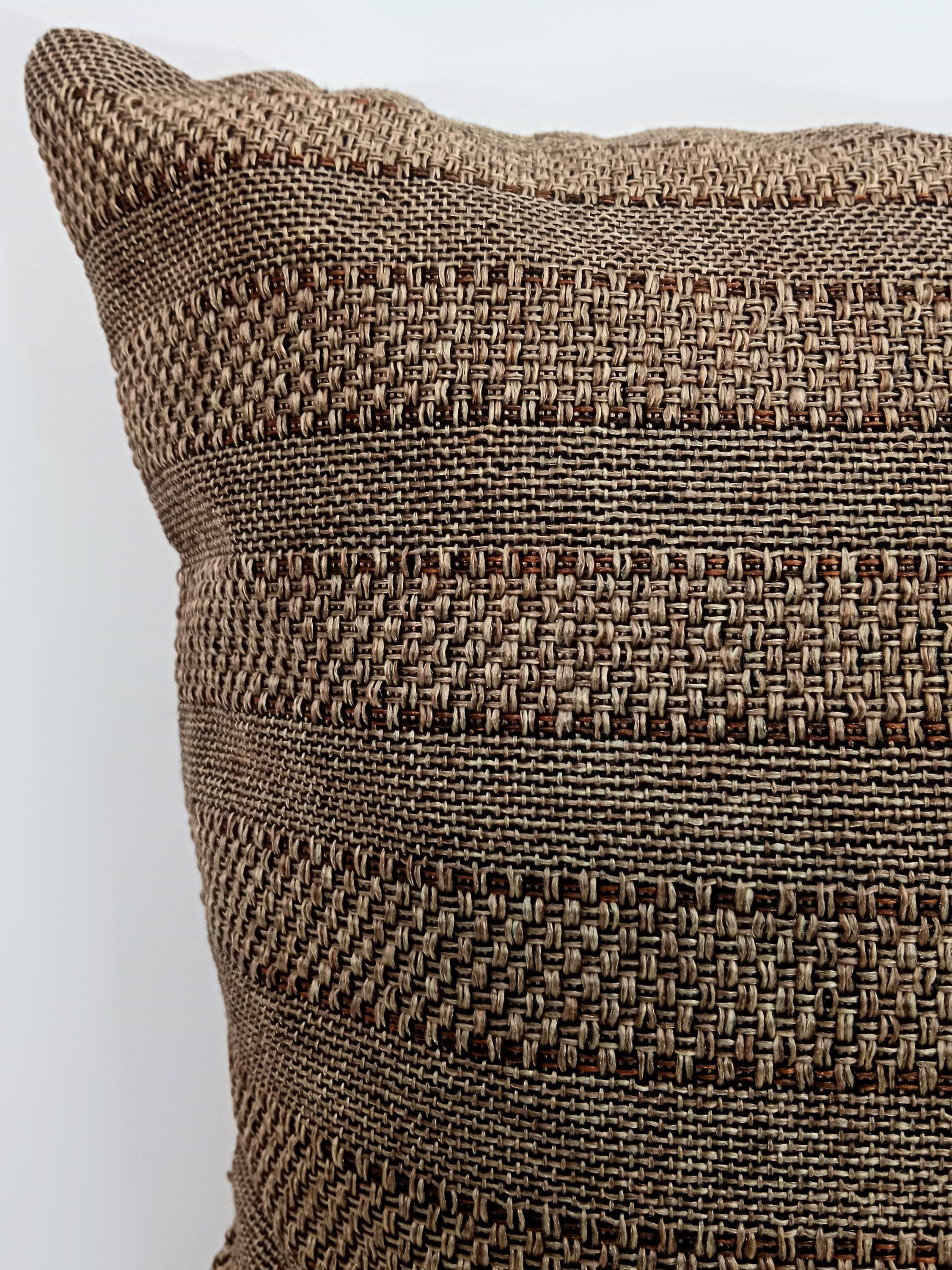 Jute Lining Cushion Covers: Brown Striped Pillow Cases, Set of 2