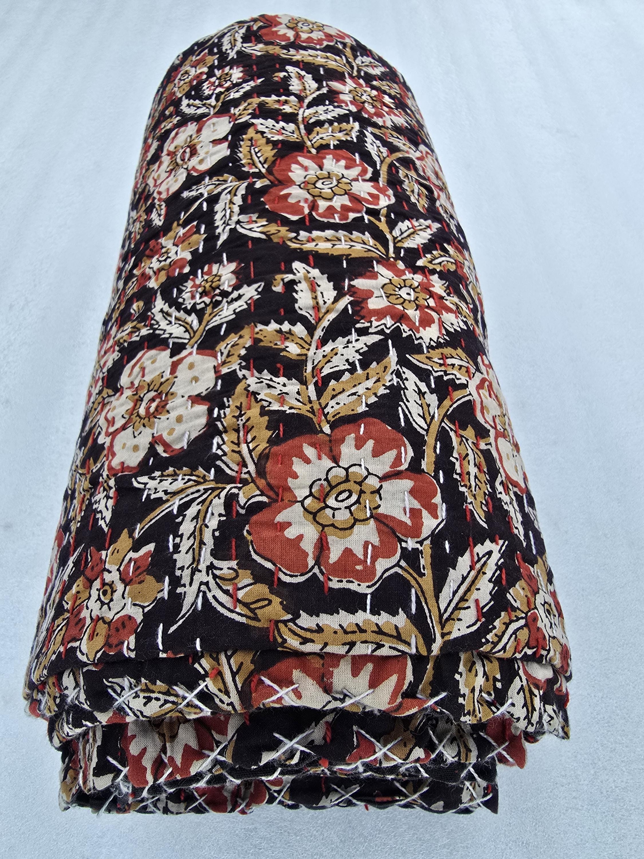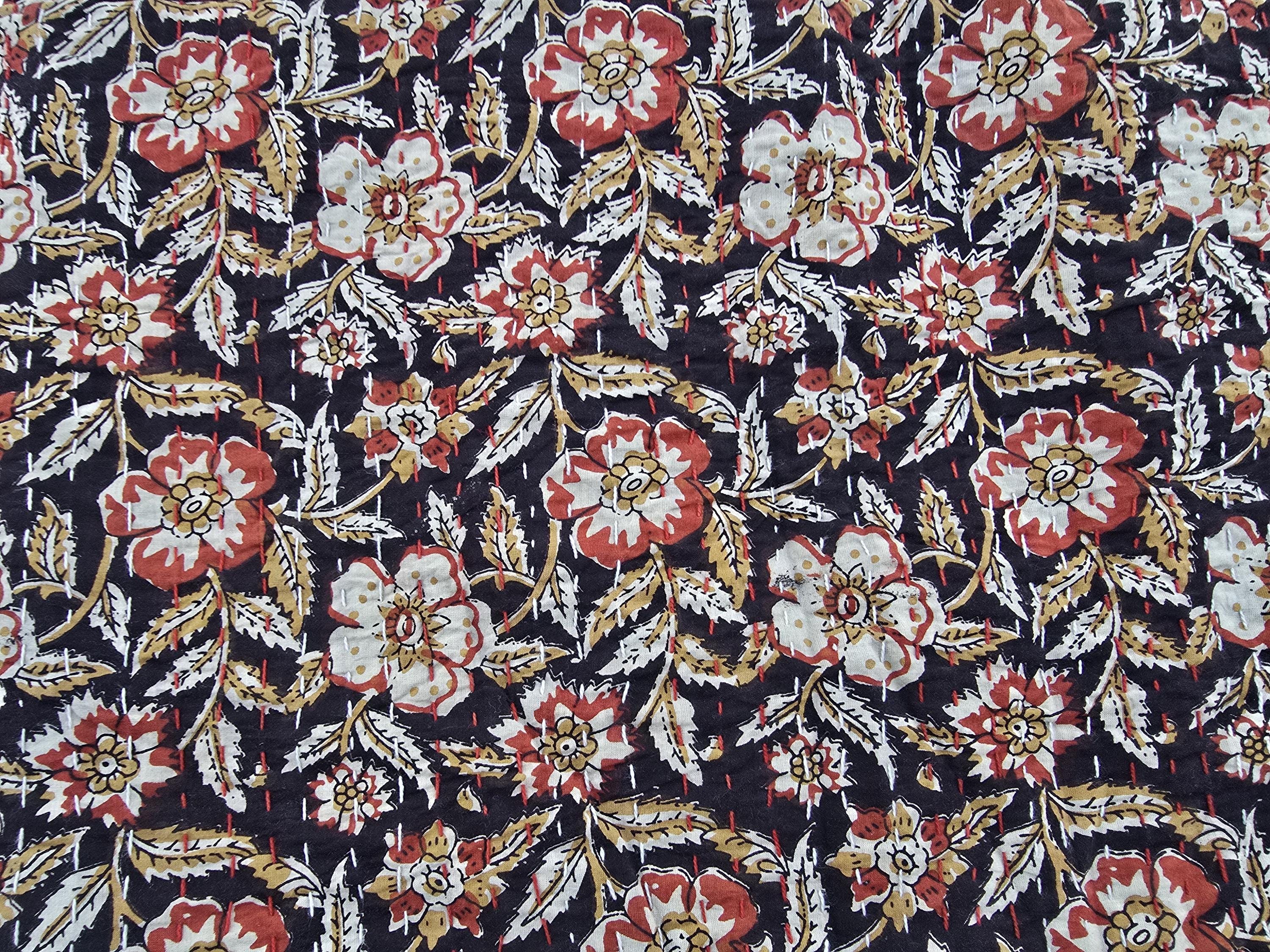 This fabric is made with just two layers of cotton which has been quilted together with little stitches known as kantha