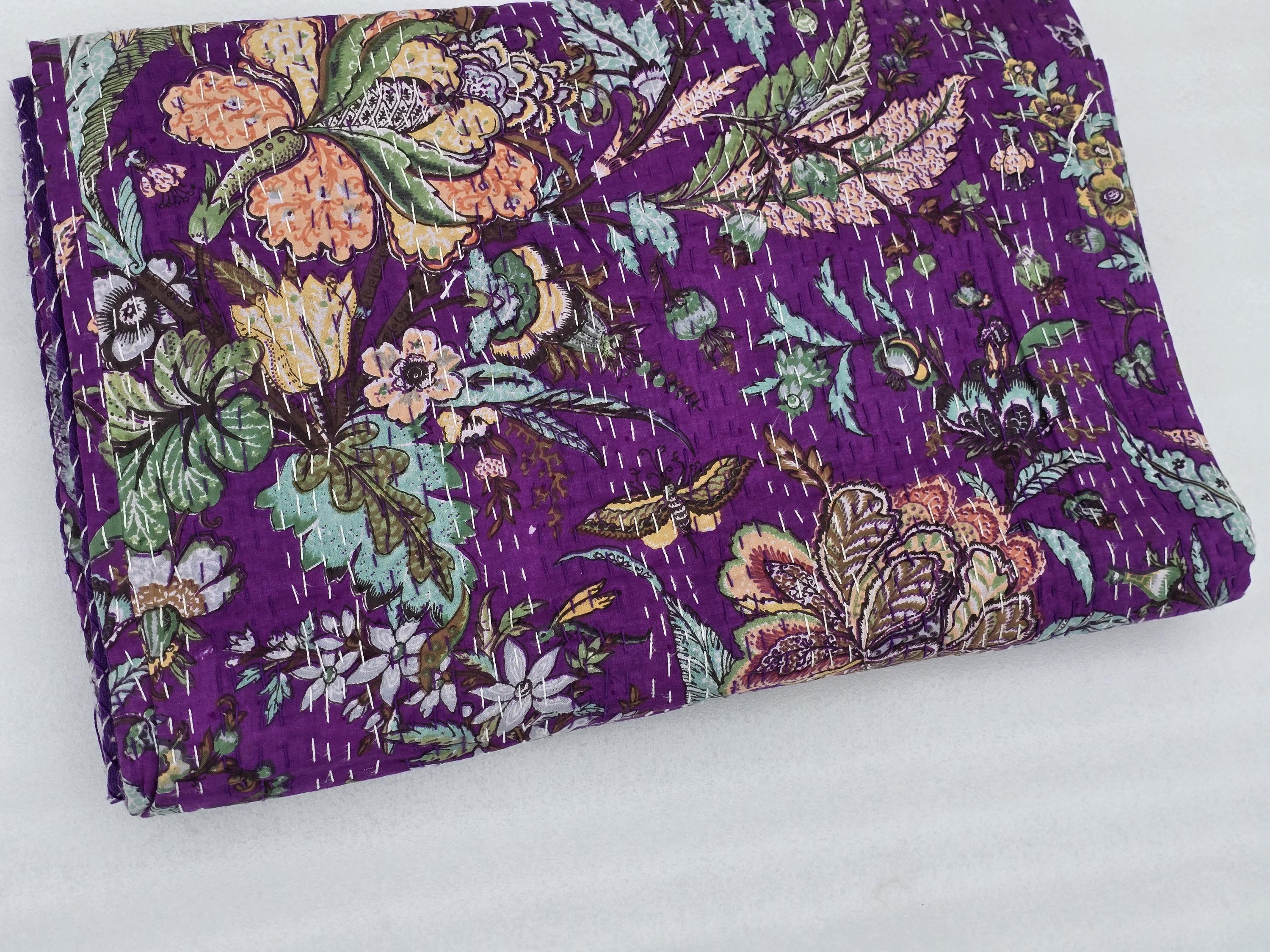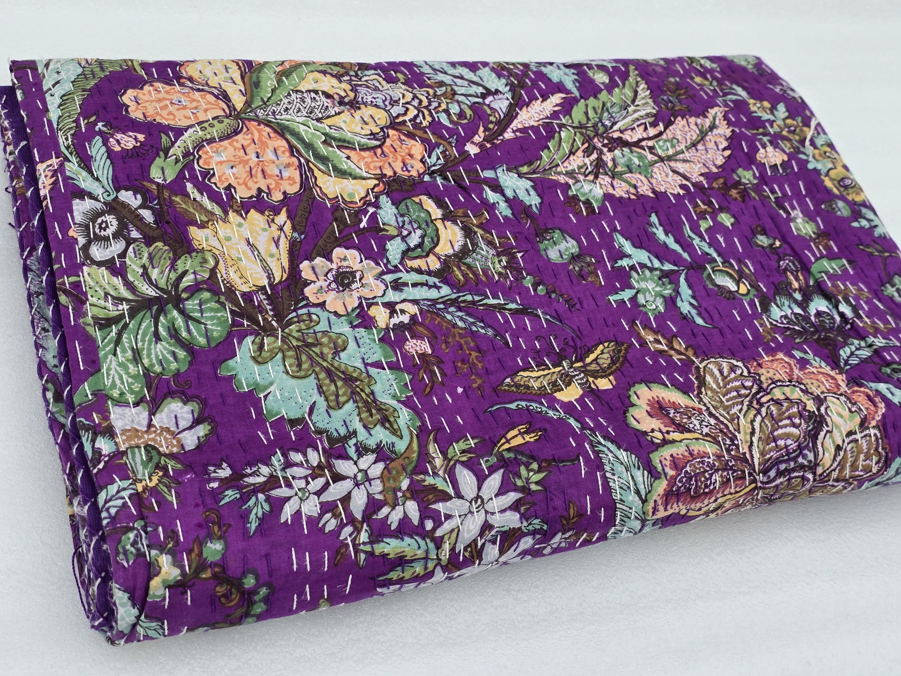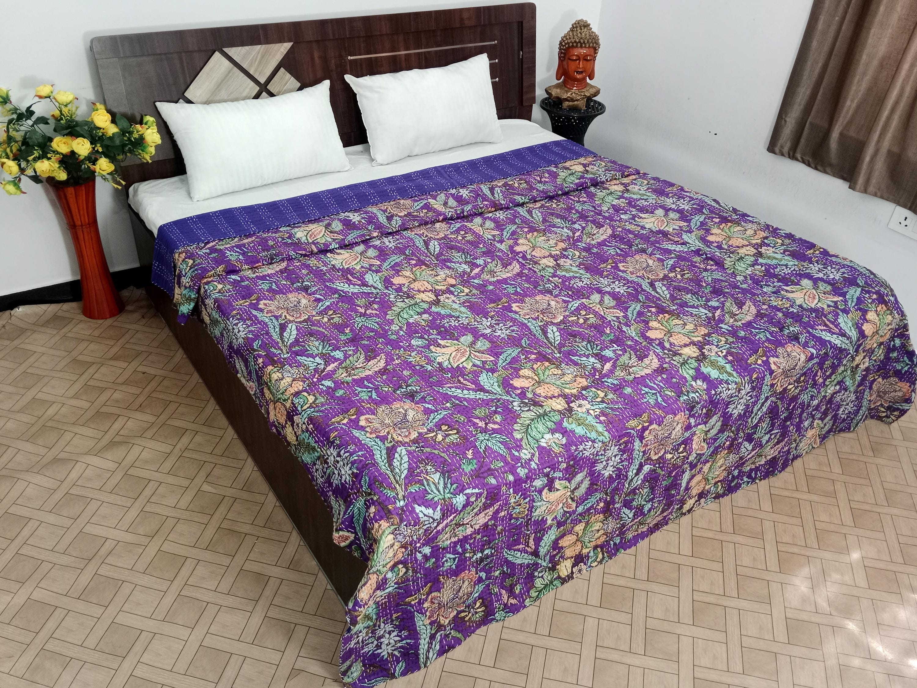 Beautiful bedspread in a stunning Cotton Kantha Bedspread Gudari,