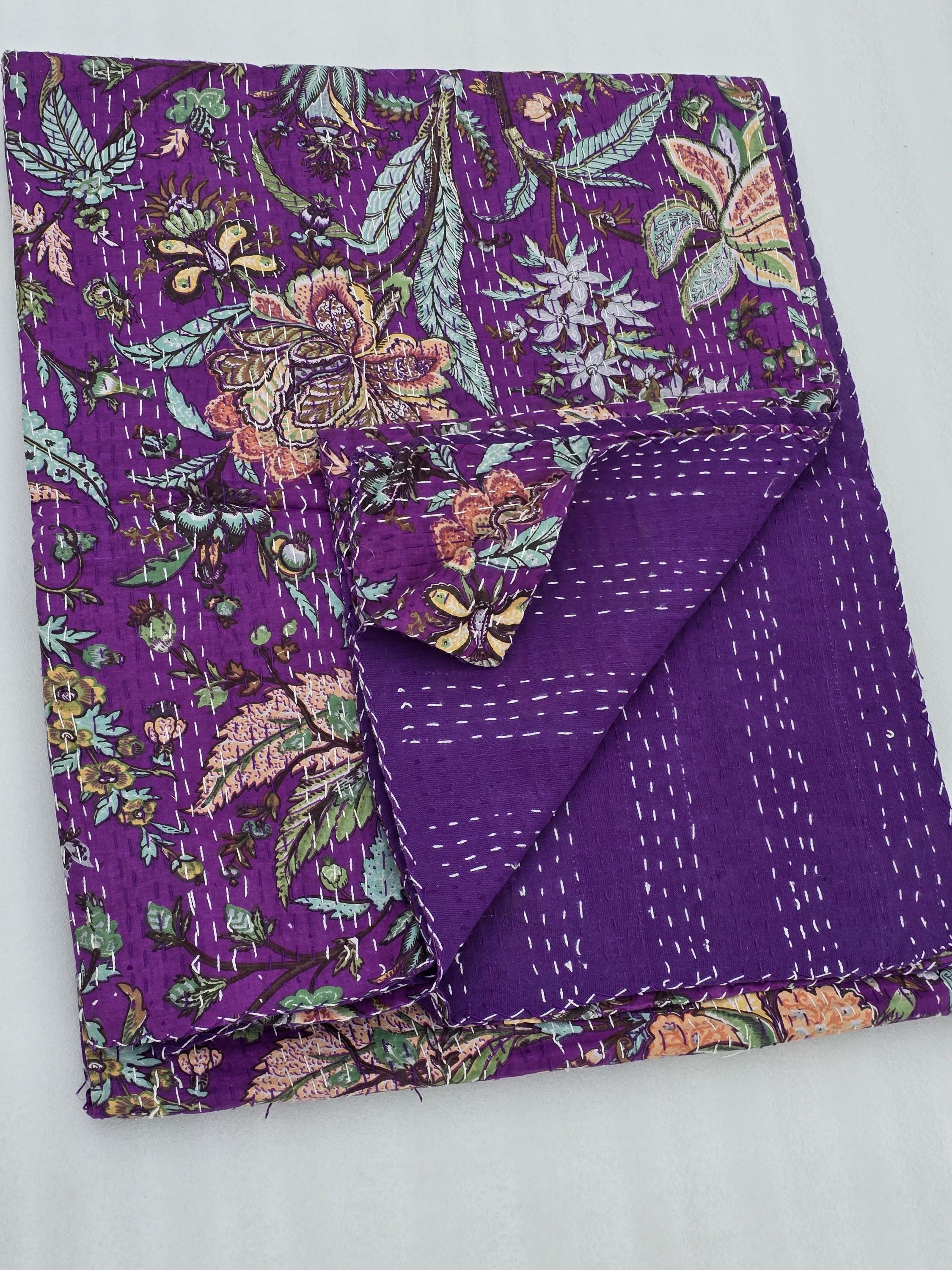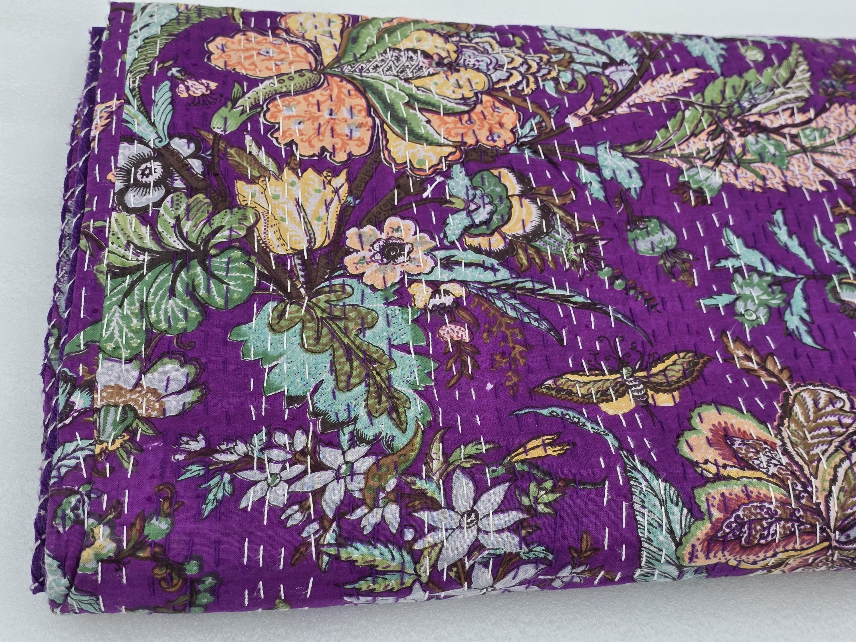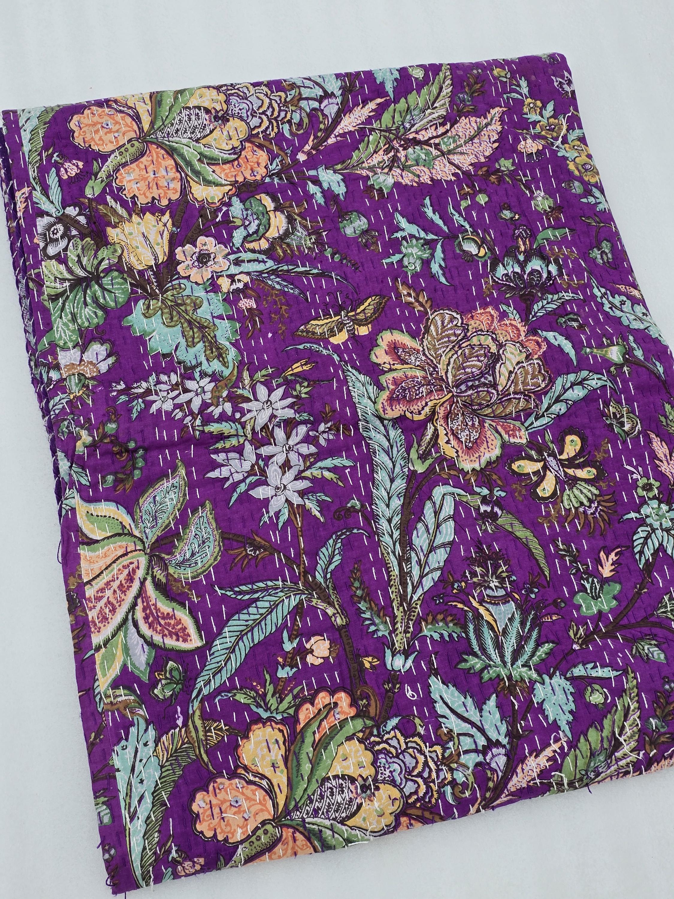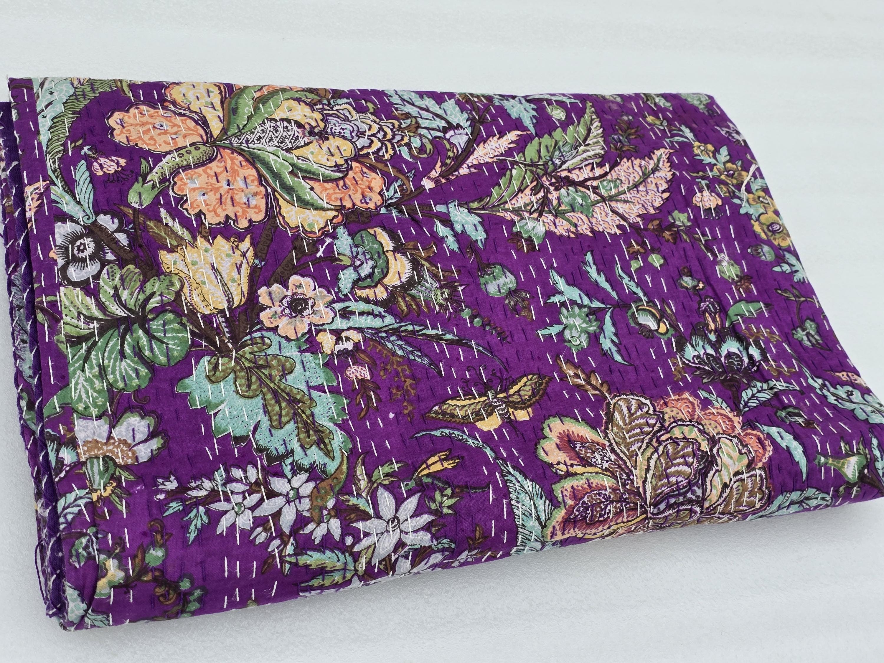 Beautiful bedspread in a stunning Cotton Kantha Bedspread Gudari,