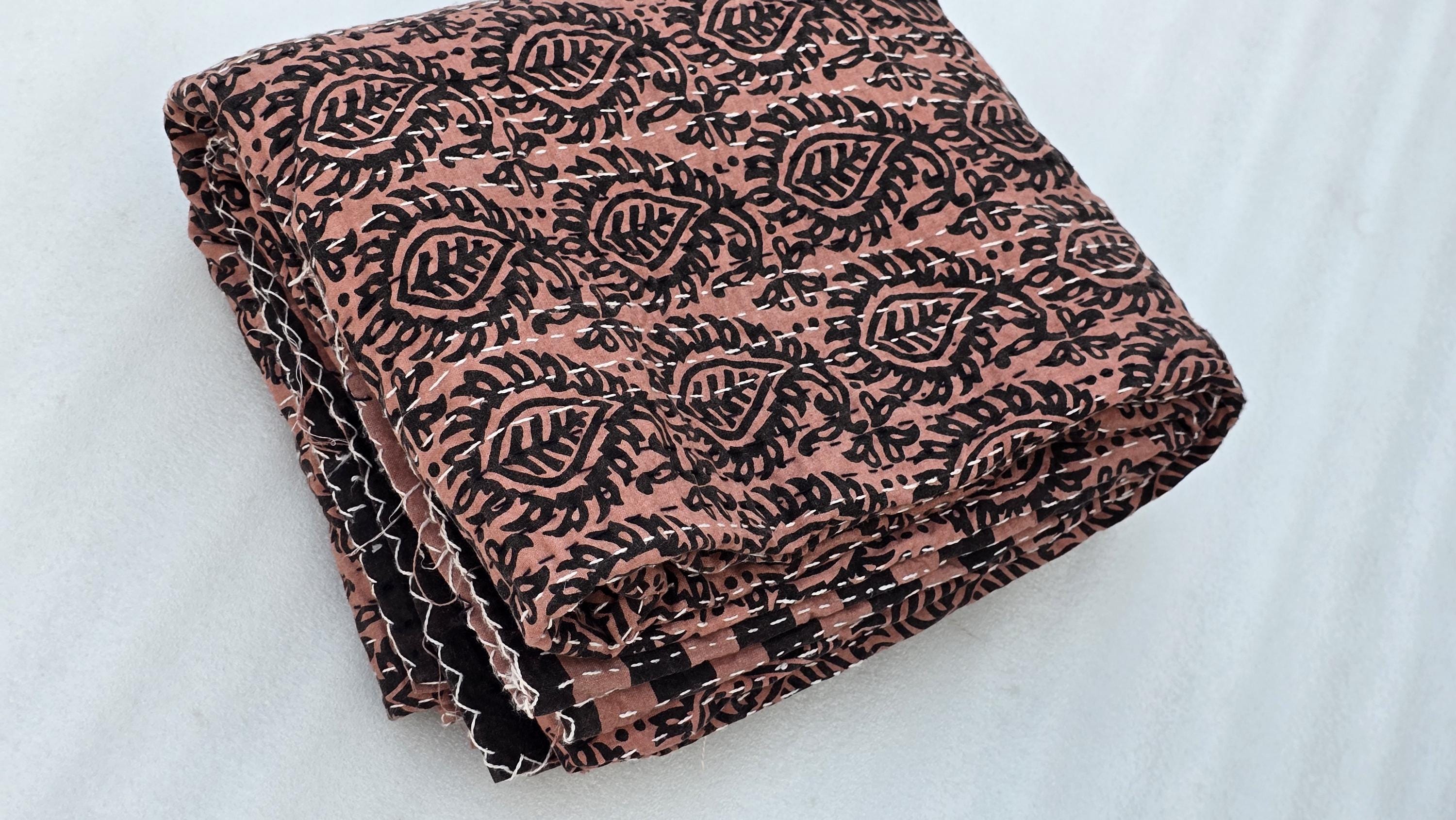 This fabric is made with just two layers of cotton which has been quilted together with little stitches known as kantha