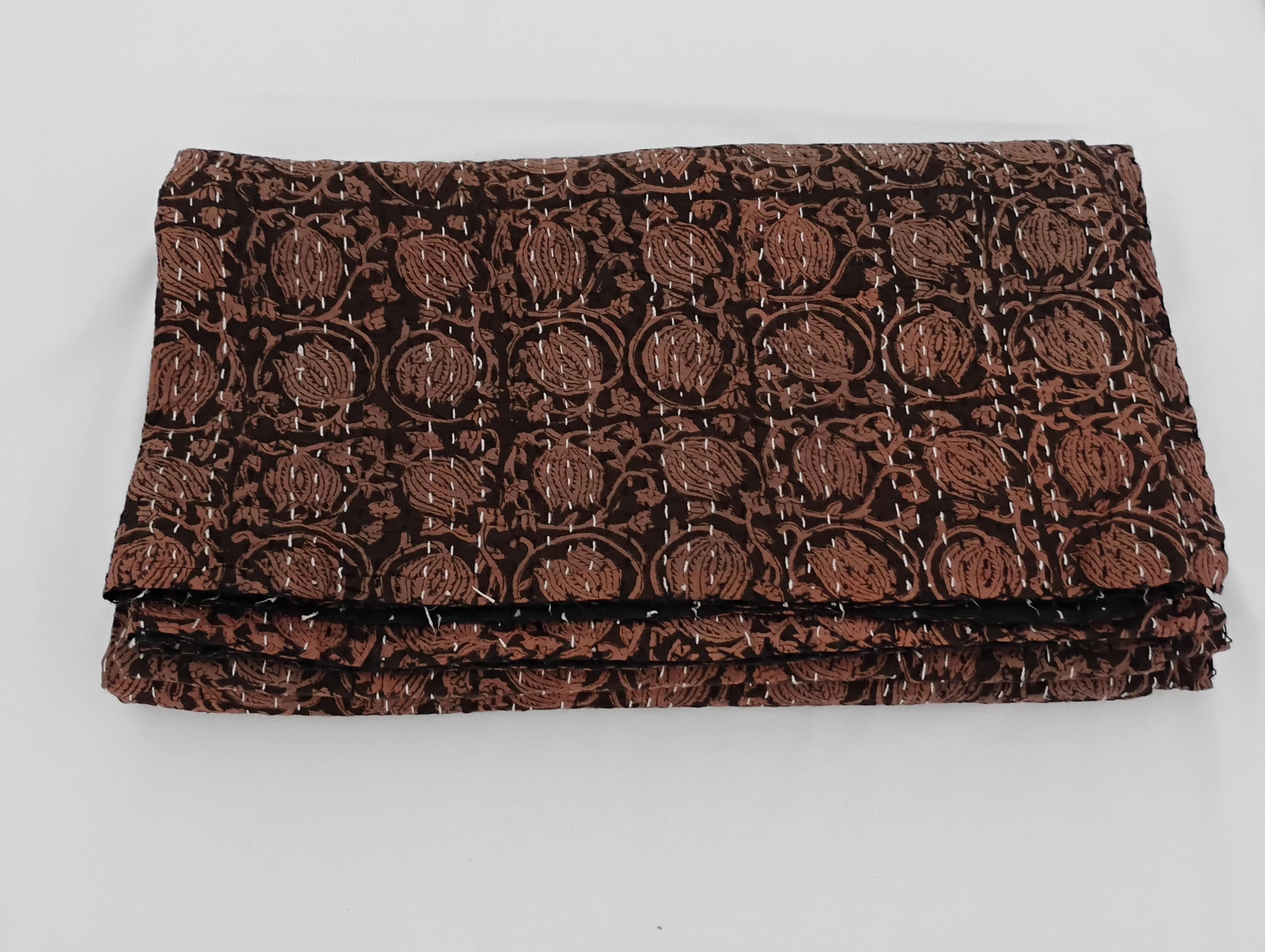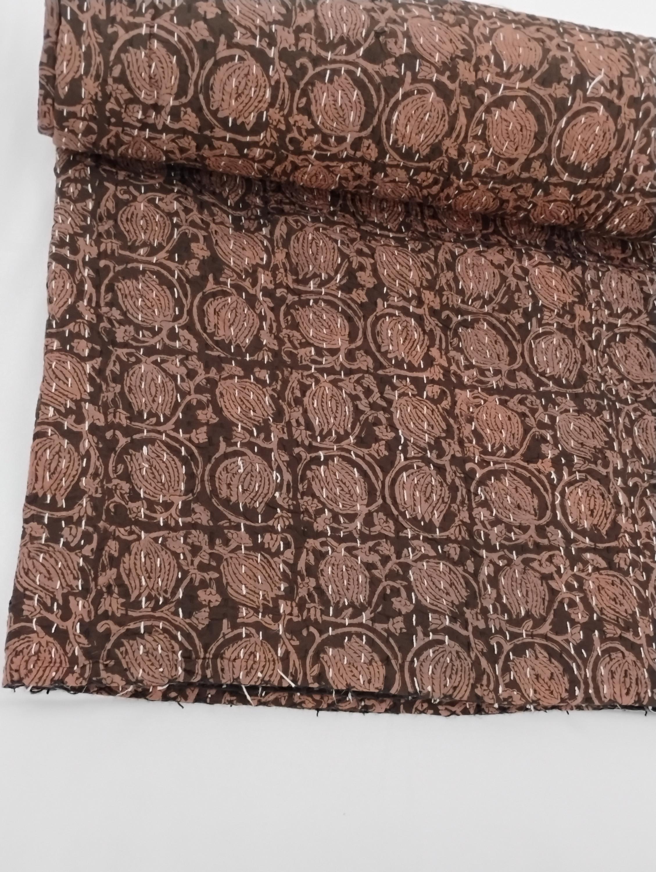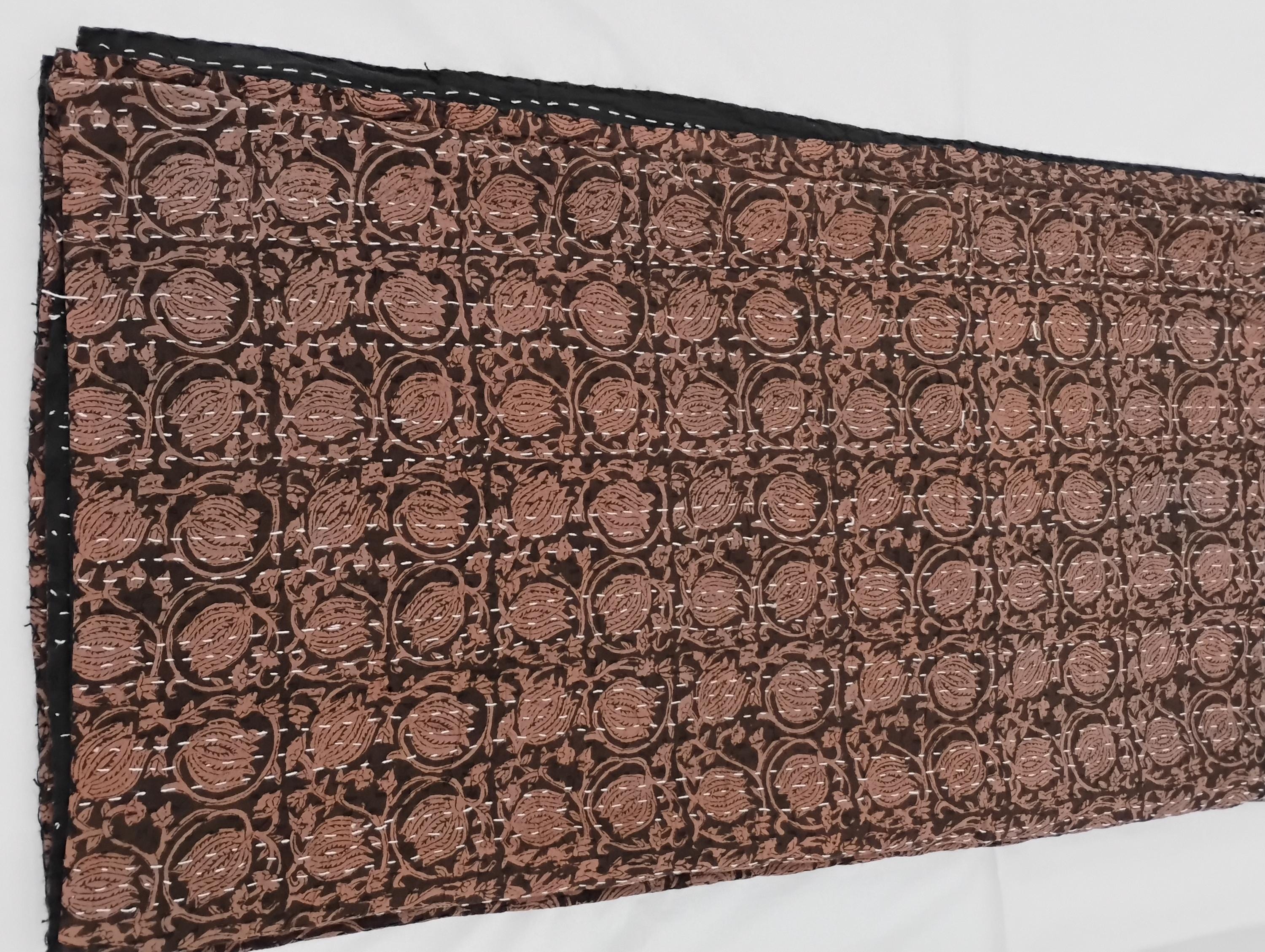 This fabric is made with just two layers of cotton which has been quilted together with little stitches known as kantha
