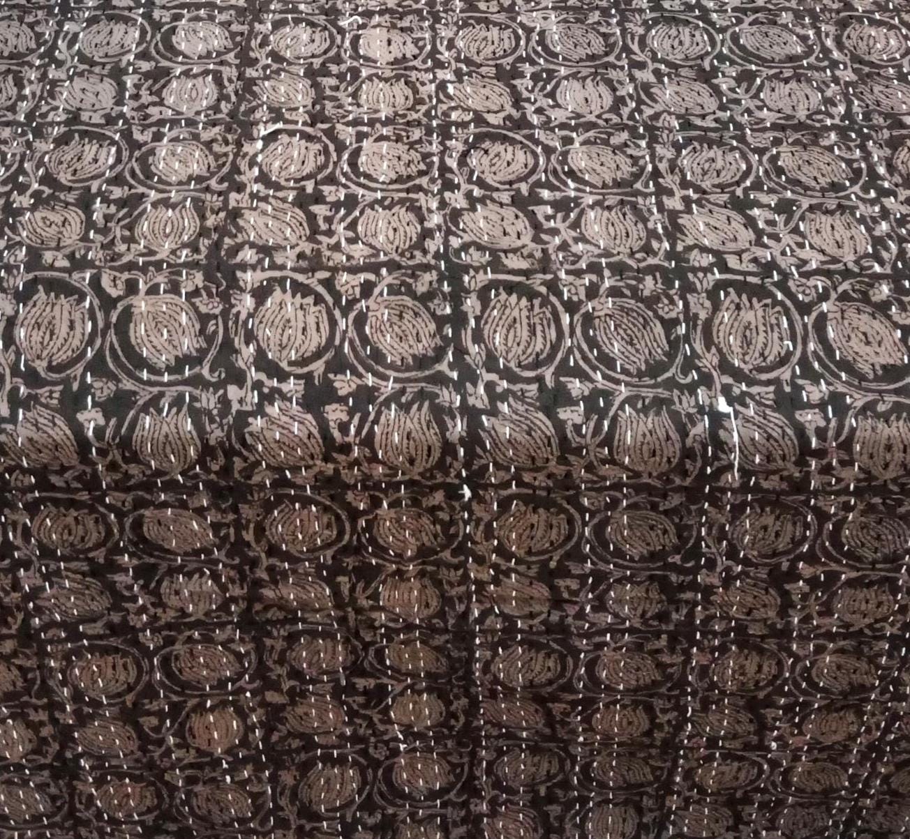 This fabric is made with just two layers of cotton which has been quilted together with little stitches known as kantha
