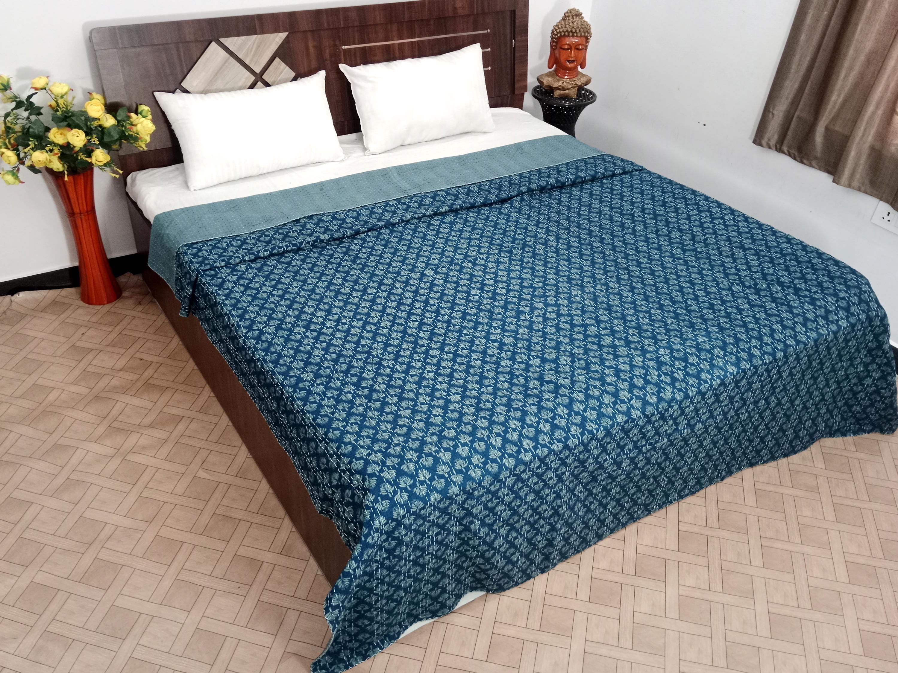 Beautiful bedspread in a stunning Cotton Kantha Bedspread Gudari,