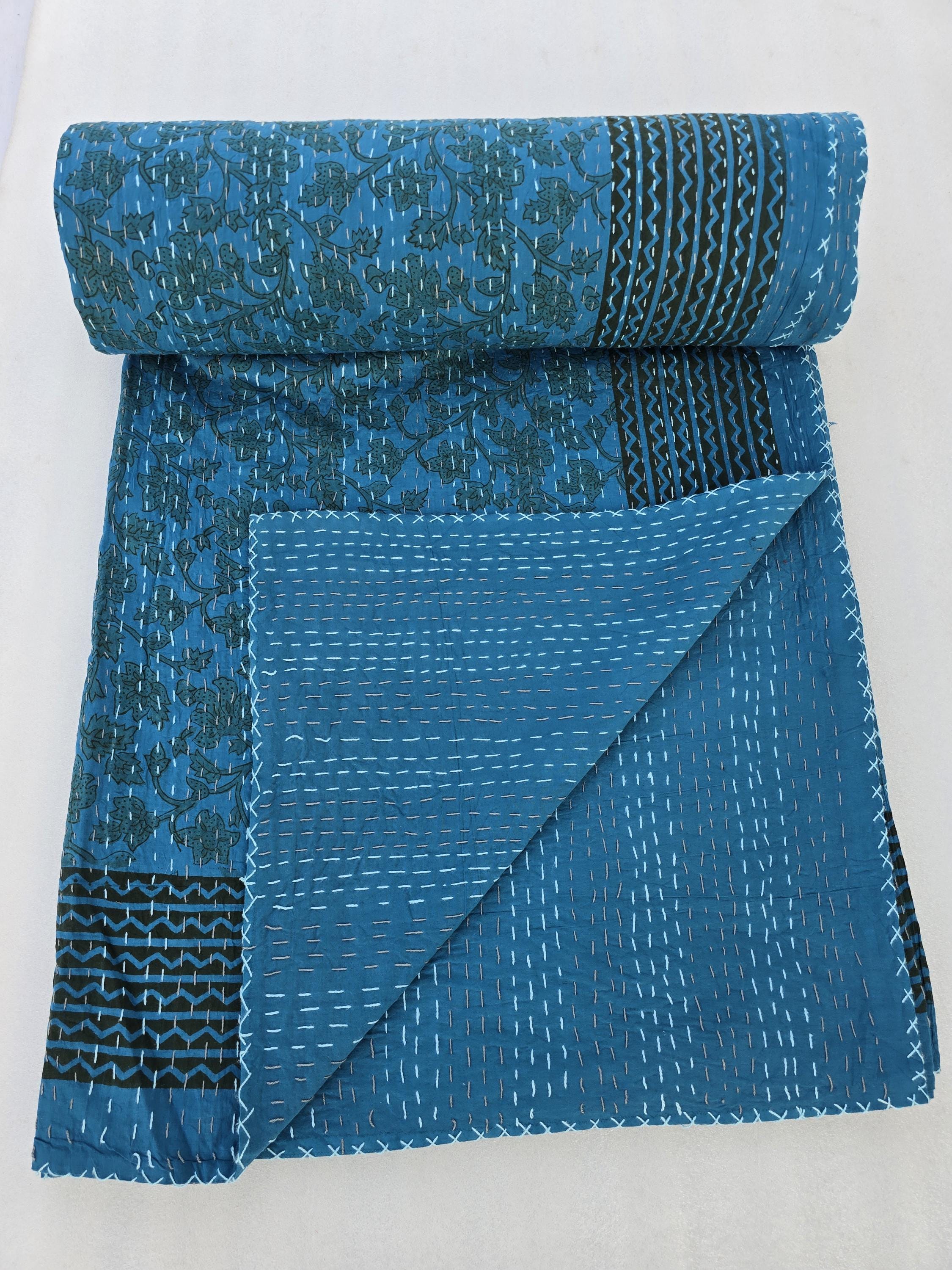 This is Two layer fabric (top side print and back side plain fabric ) hand work kantha