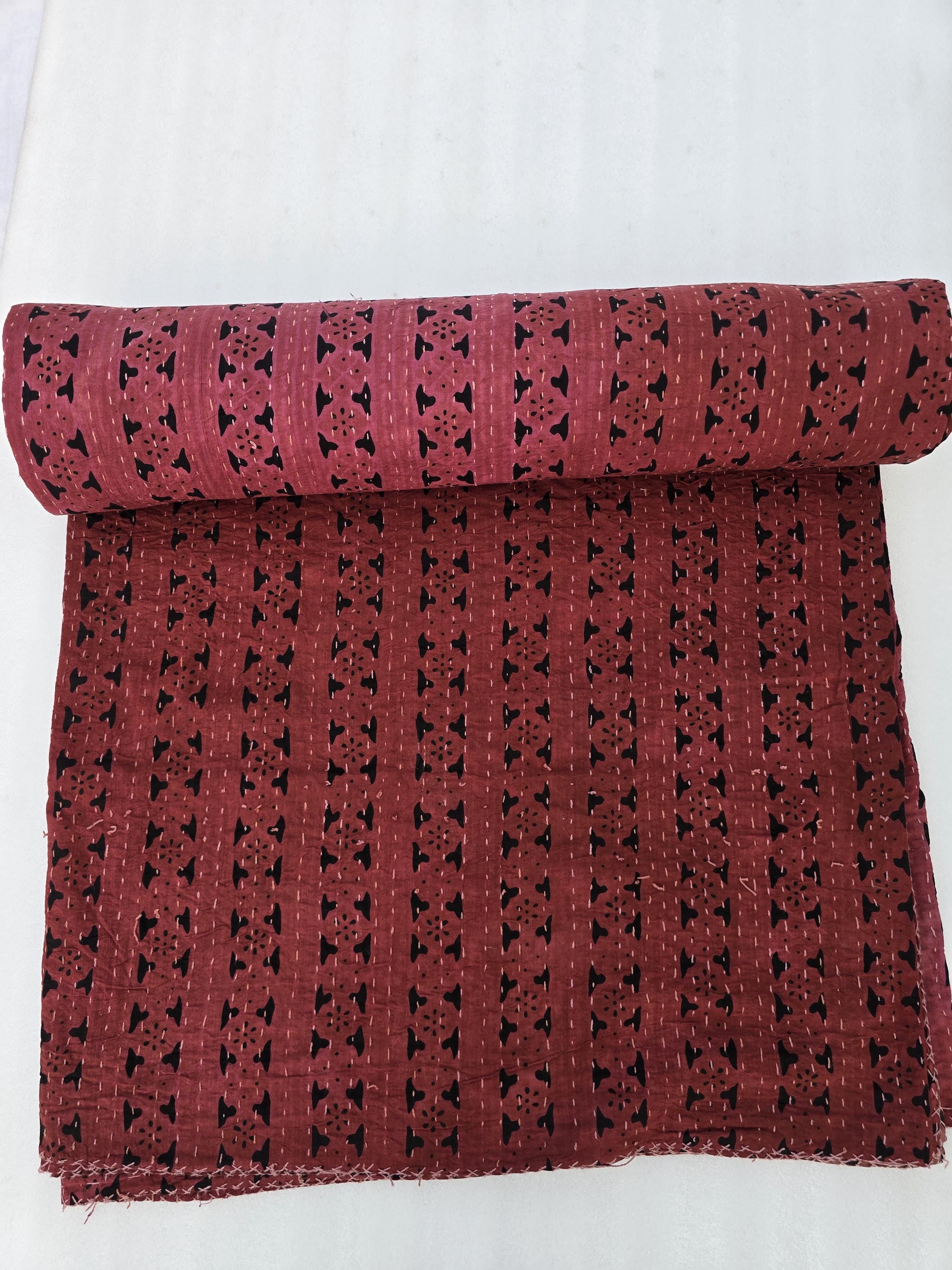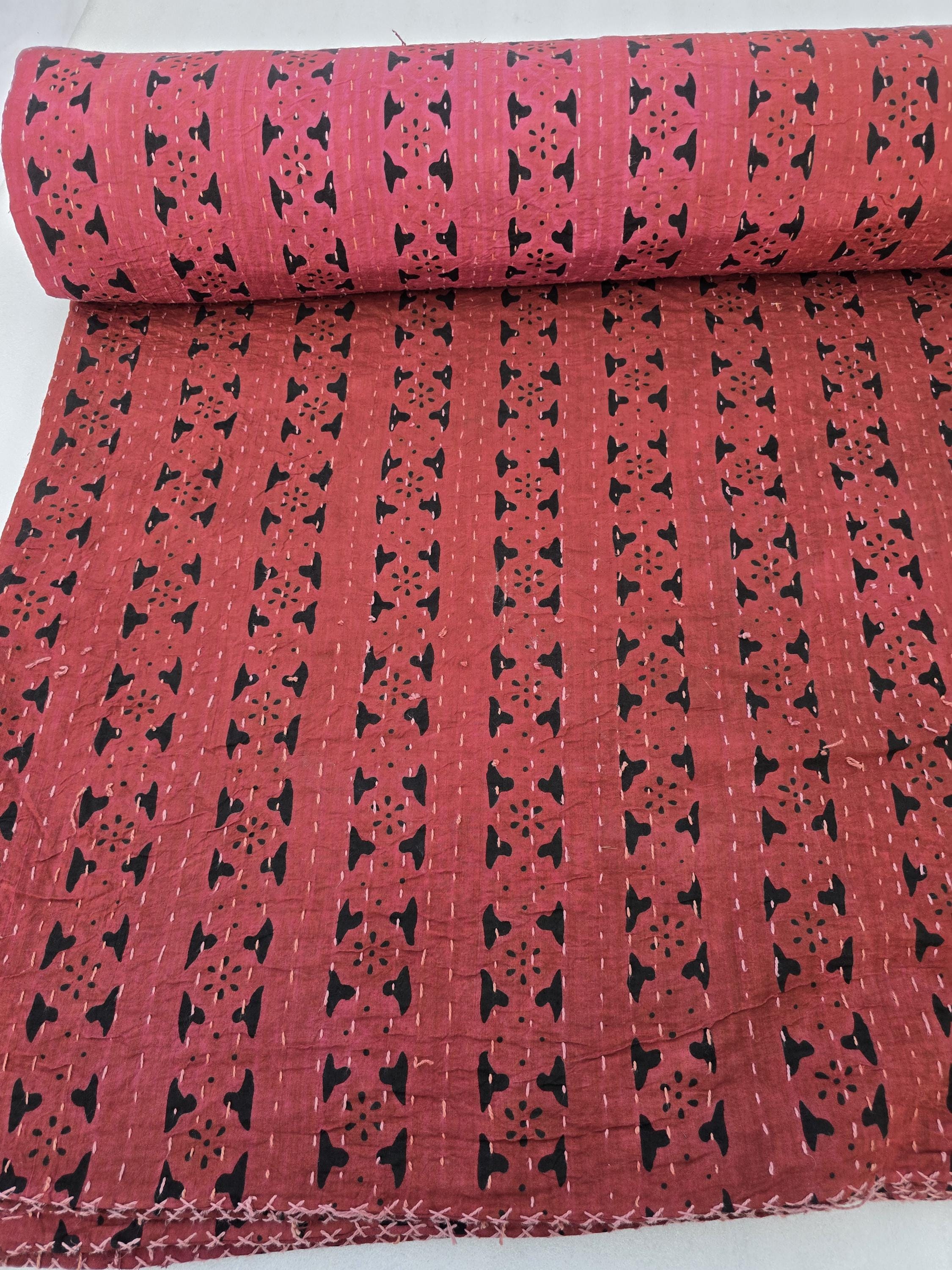 Floral Handmade Kantha Quilt, Vintage Floral Block Print Bedding Vintage Bedding Quilt Gorgeous quilt that has the perfect vintage look