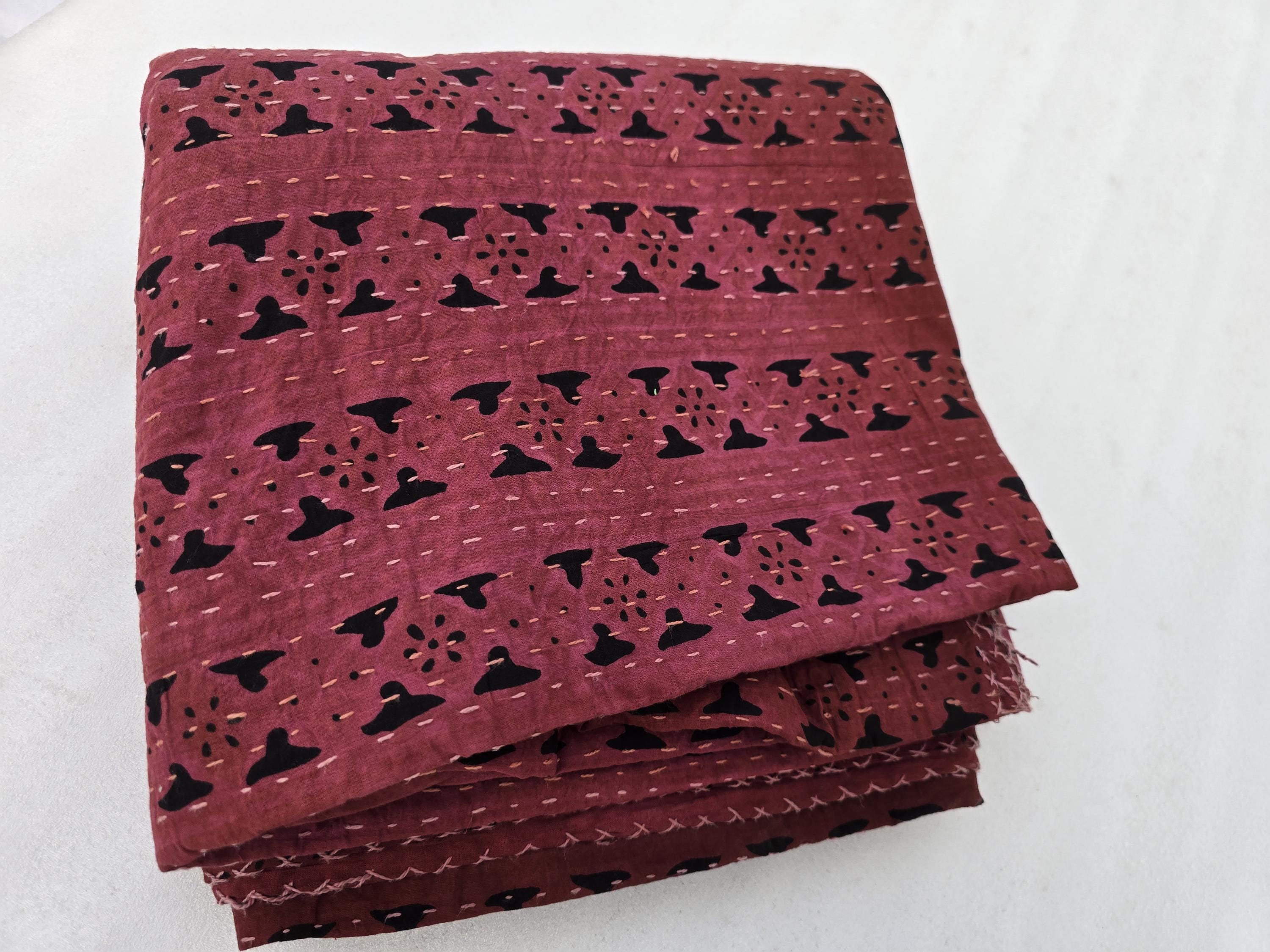 This is Two layer fabric (top side print and back side plain fabric ) hand work kantha