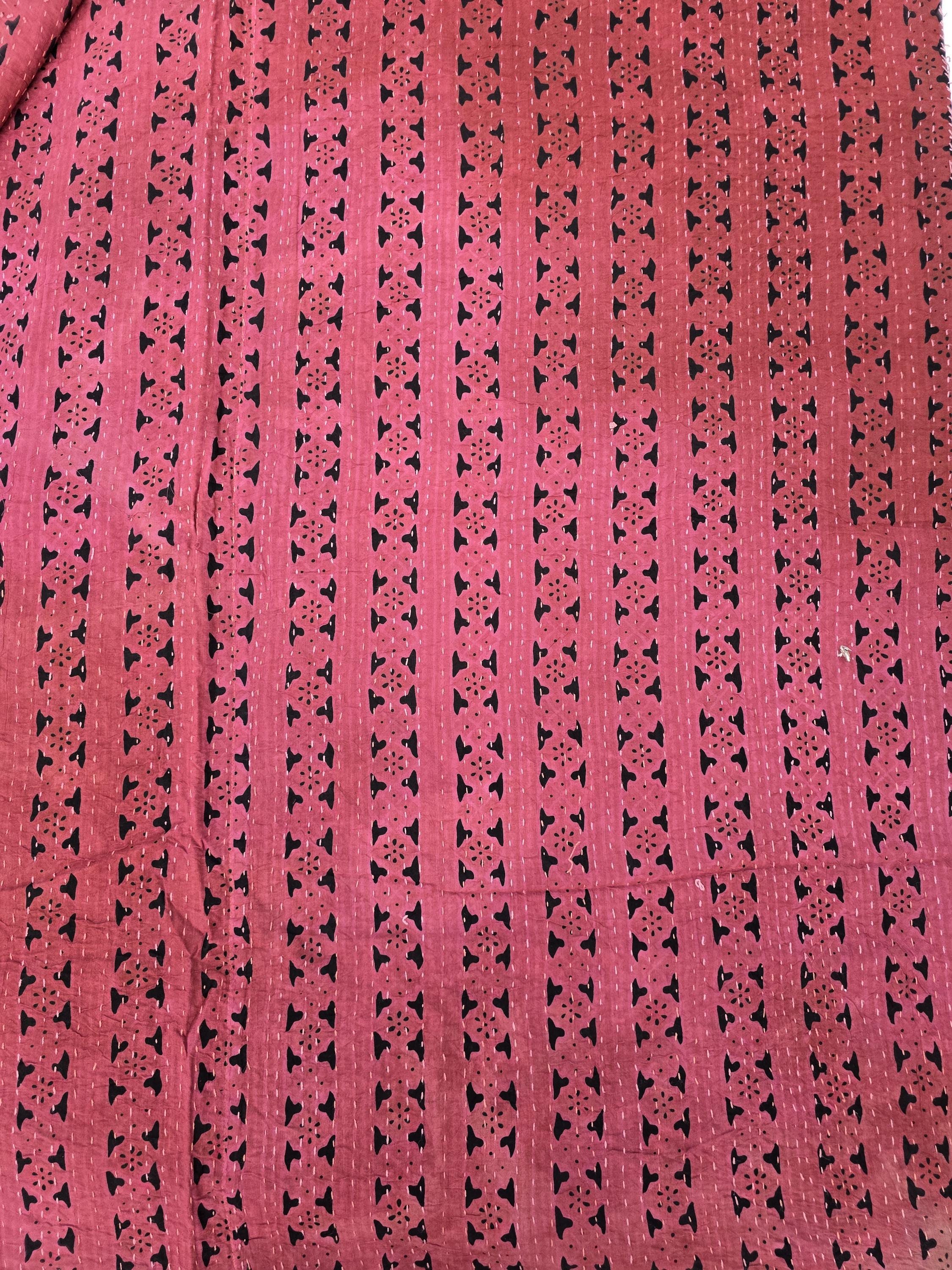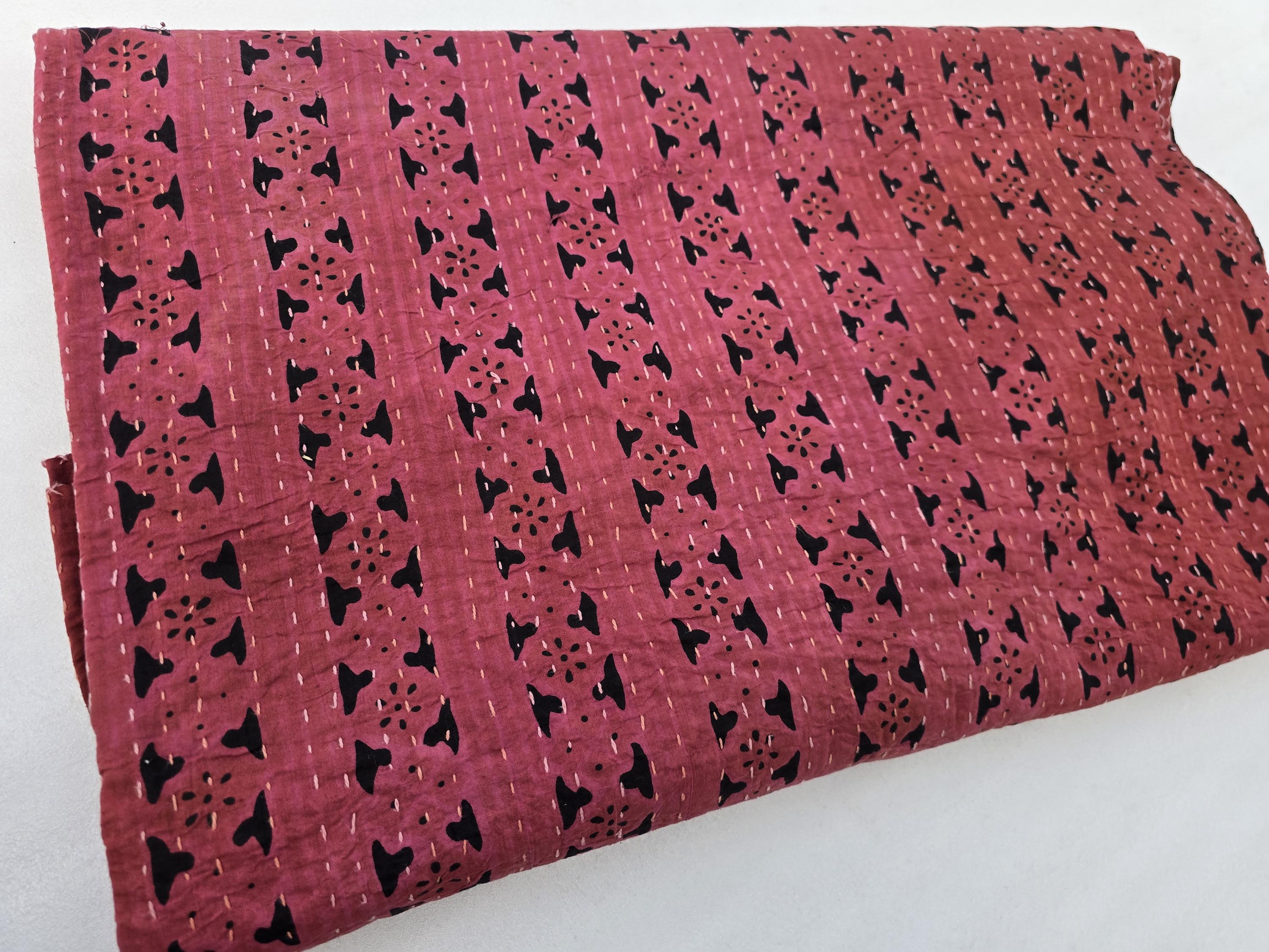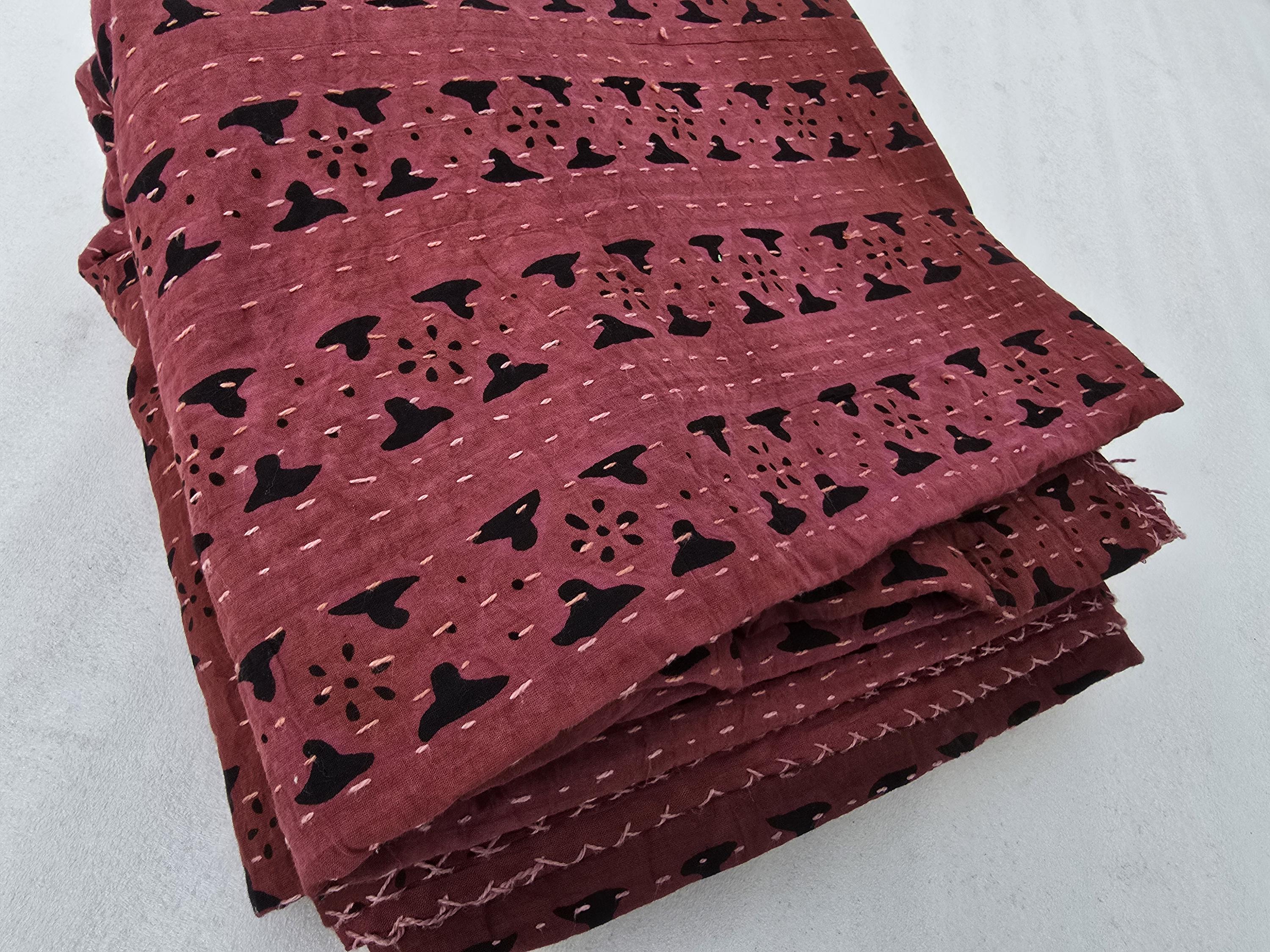 This fabric is made with just two layers of cotton which has been quilted together with little stitches known as kantha