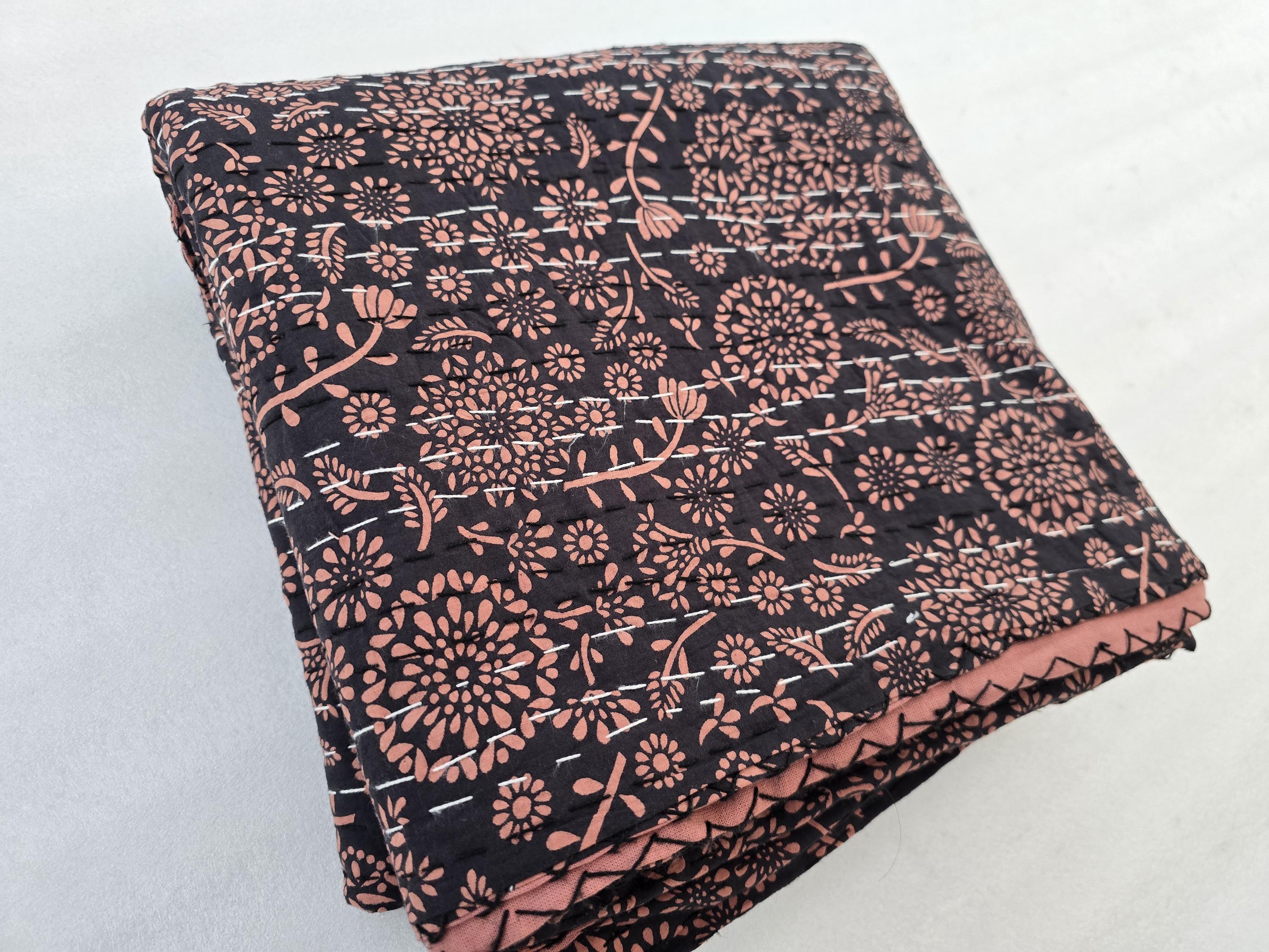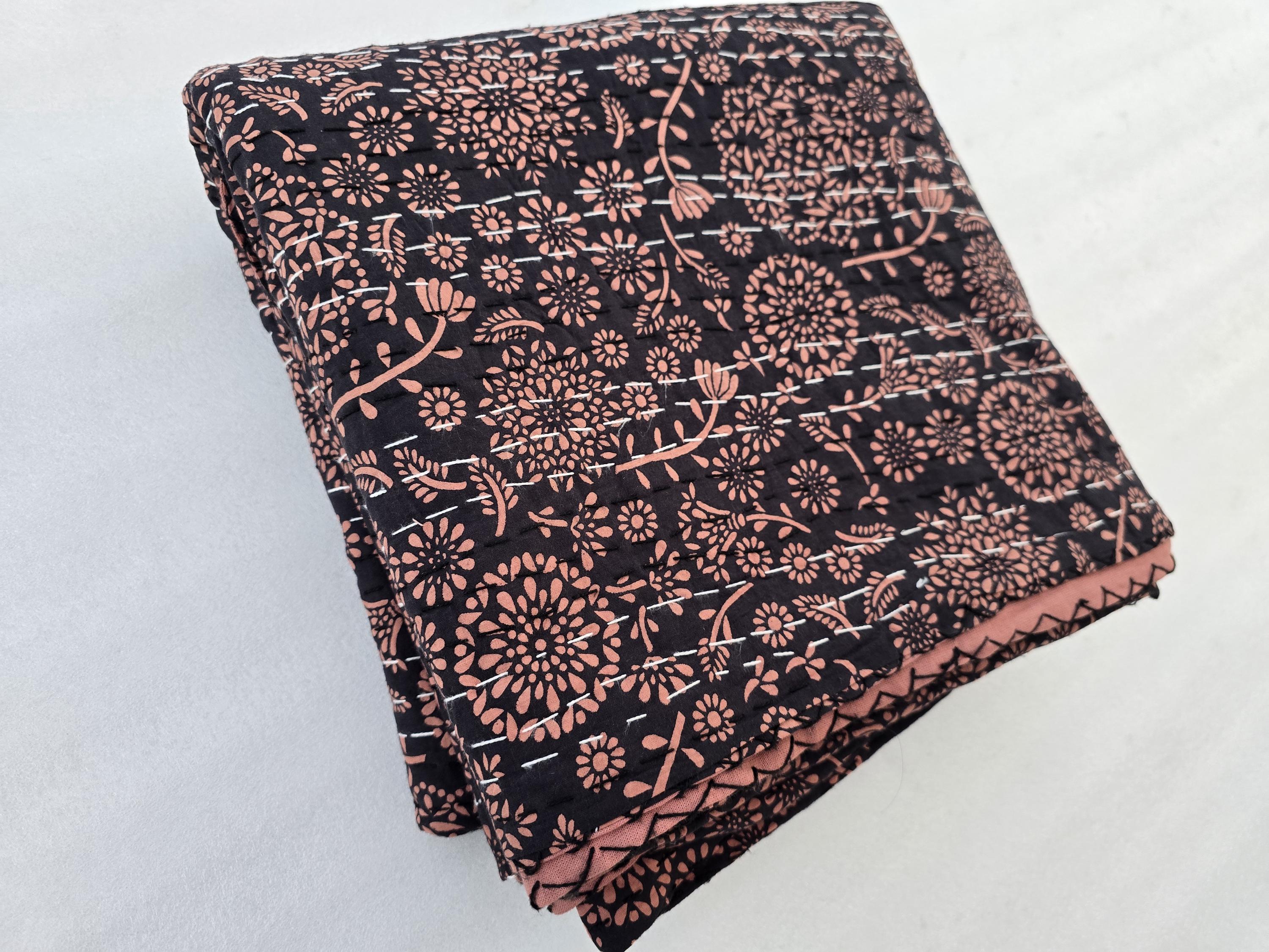 This is Two layer fabric (top side print and back side plain fabric ) hand work kantha