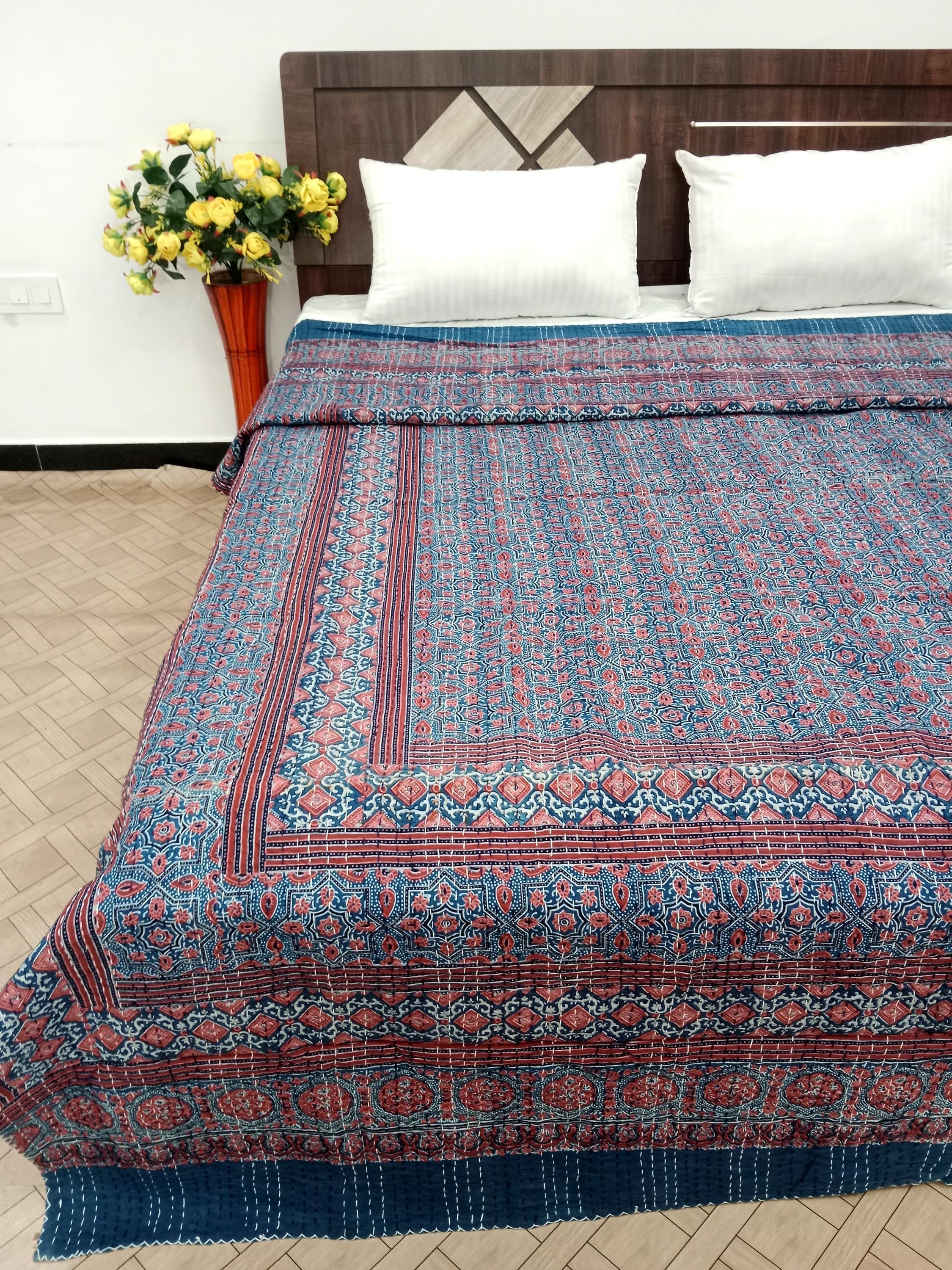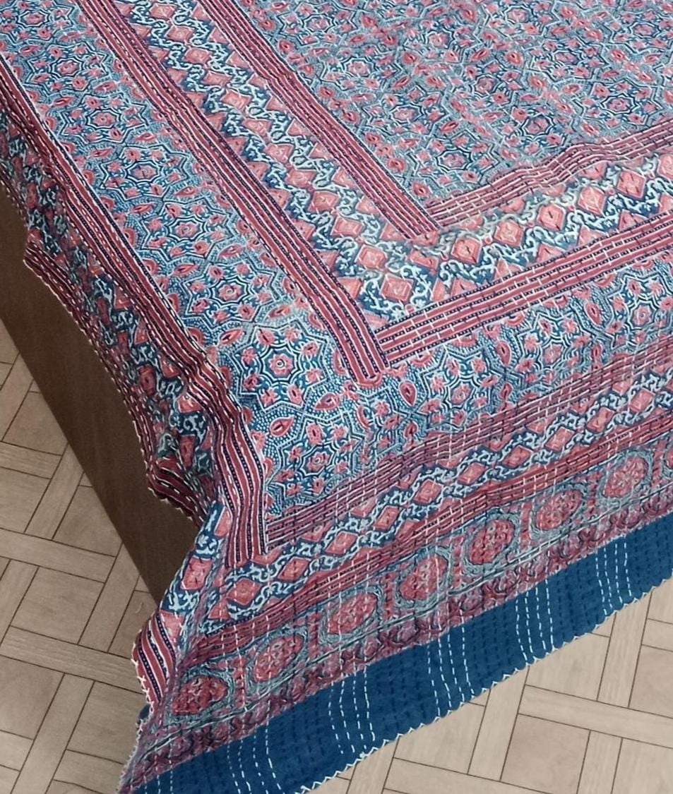 This is Two layer fabric (top side print and back side plain fabric ) hand work kantha