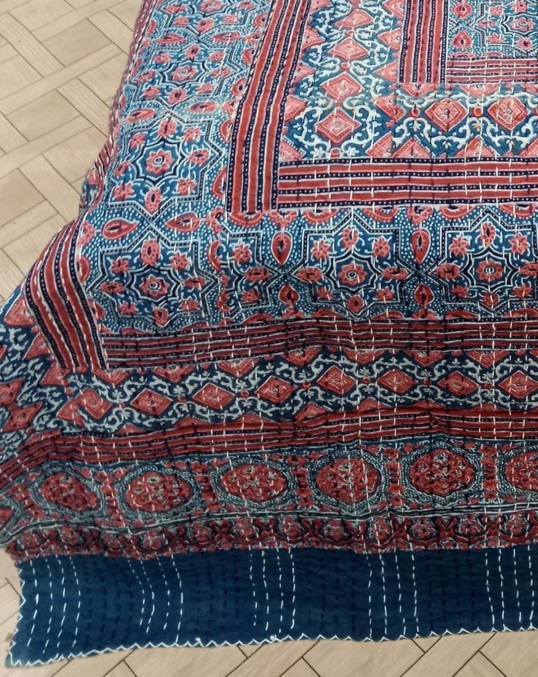 This fabric is made with just two layers of cotton which has been quilted together with little stitches known as kantha