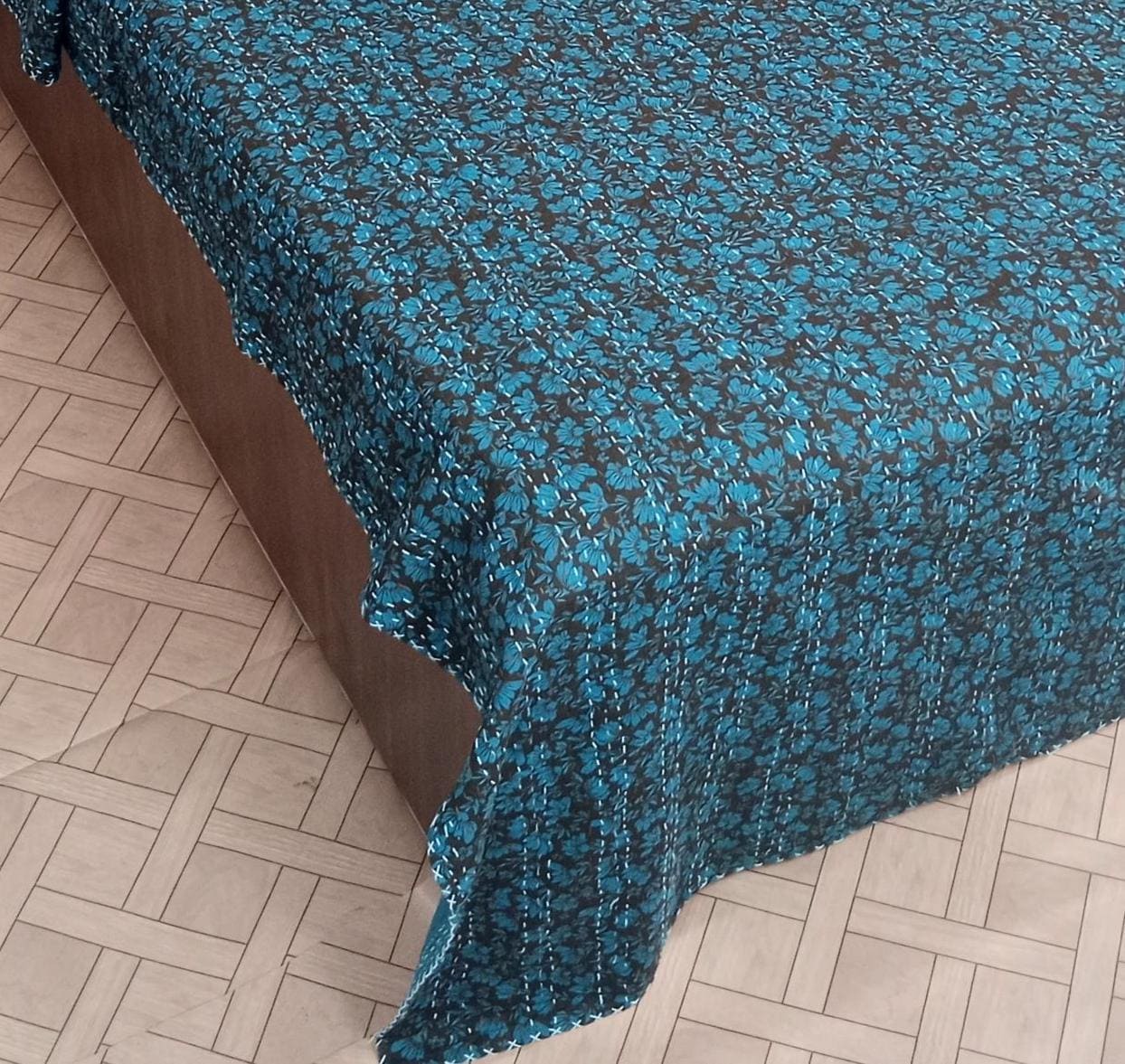 Beautiful bedspread in a stunning Cotton Kantha Bedspread Gudari,