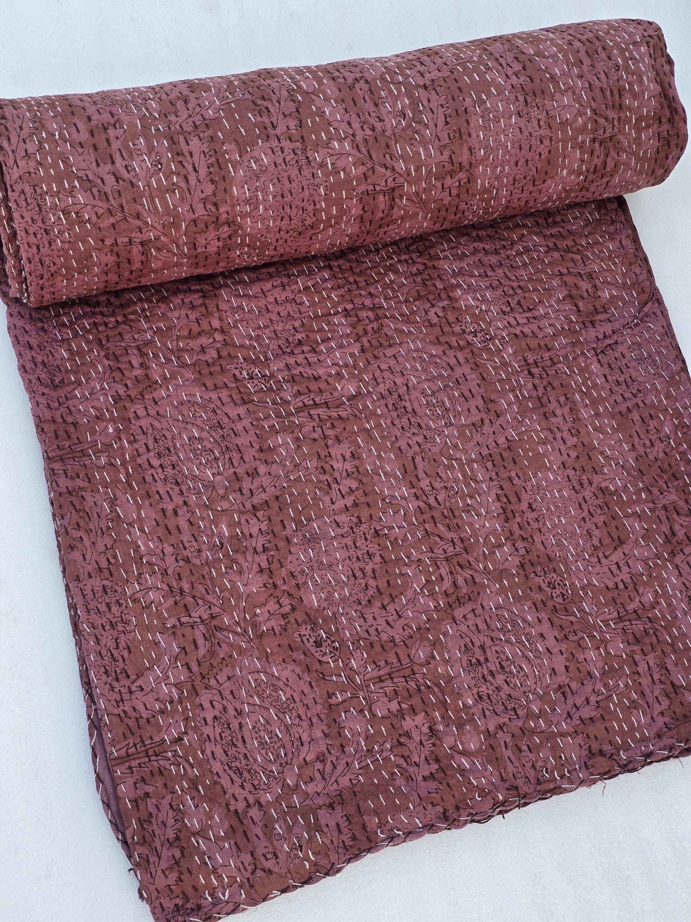 This is Two layer fabric (top side print and back side plain fabric ) hand work kantha