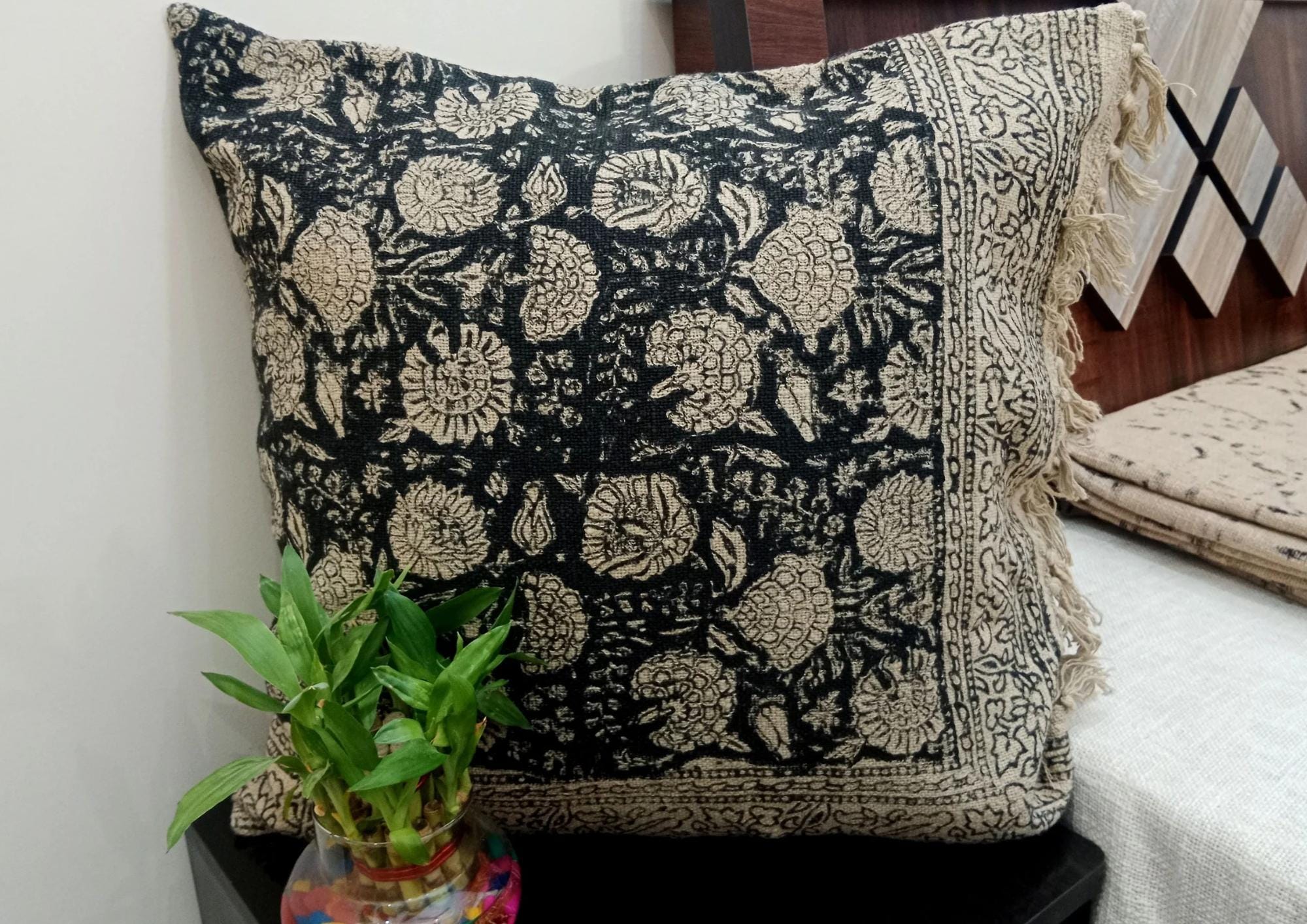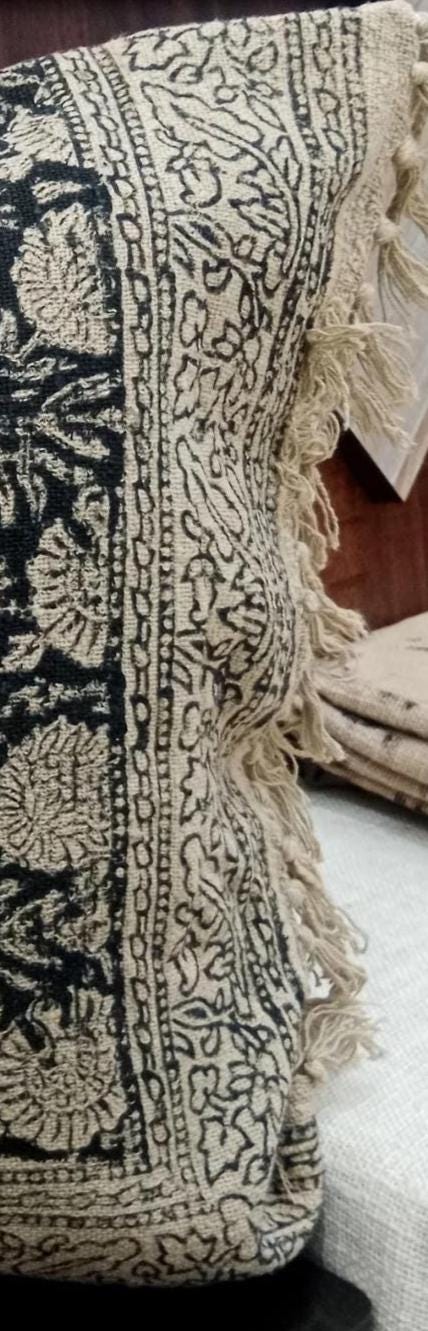 👉Indian ethnic hand block printed decorative throw pillow. Listing Includes set of 1 Pieces printed cotton cushion covers with Hand print. Traditionally, block printing was used to print fabrics. This process involves sketching and carving a design into a block of wood, applying ink or dye, and stamping it onto a finished cloth. Block printing differs from weaving, where patterns are woven into a fabric as it's created.