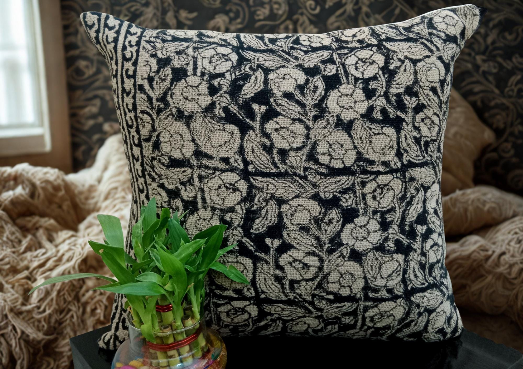 👉Indian ethnic hand block printed decorative throw pillow. Listing Includes set of 1 Pieces printed cotton cushion covers with Hand print. Traditionally, block printing was used to print fabrics. This process involves sketching and carving a design into a block of wood, applying ink or dye, and stamping it onto a finished cloth. Block printing differs from weaving, where patterns are woven into a fabric as it's created.