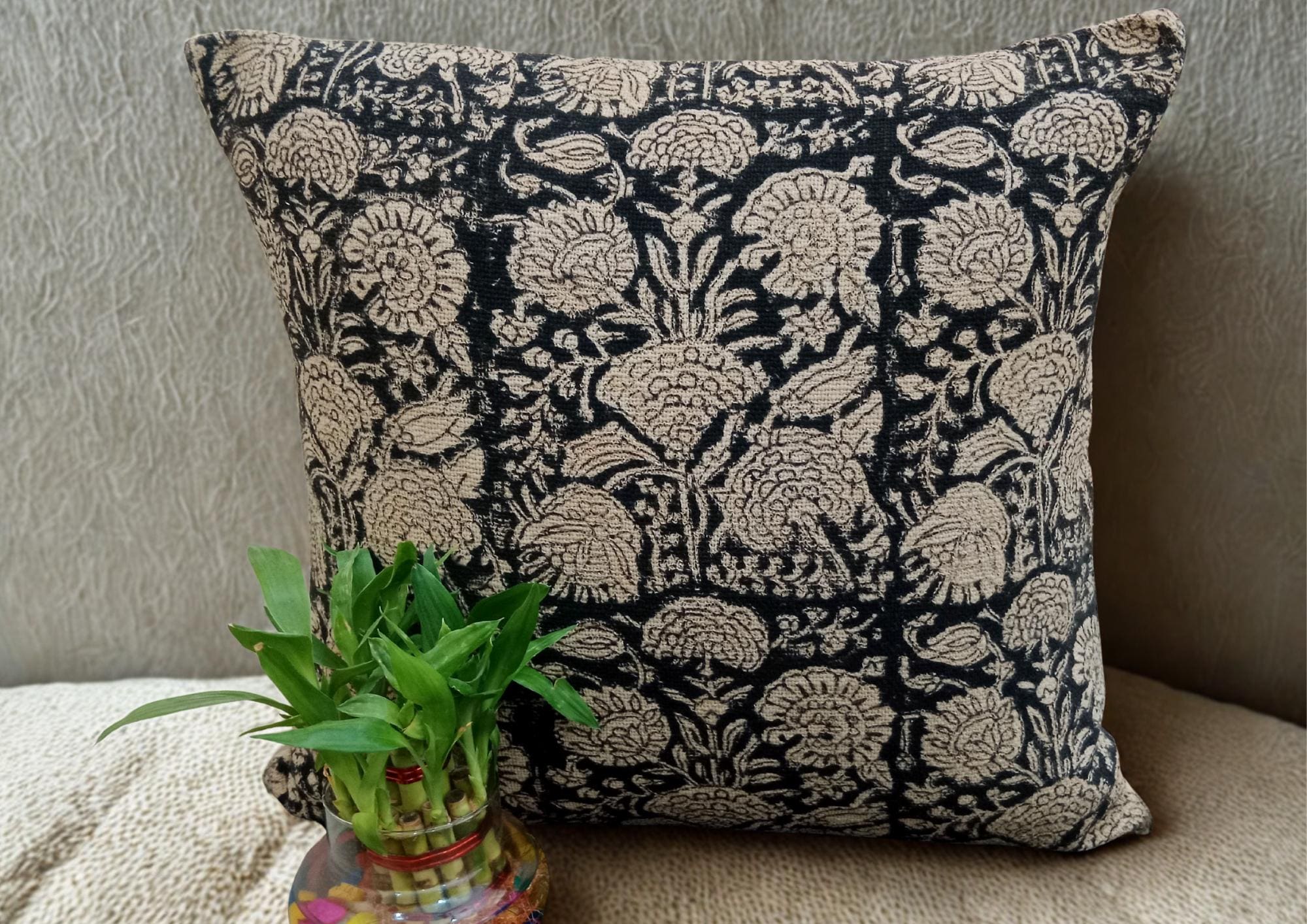 👉Indian ethnic hand block printed decorative throw pillow. Listing Includes set of 1 Pieces printed cotton cushion covers with Hand print. Traditionally, block printing was used to print fabrics. This process involves sketching and carving a design into a block of wood, applying ink or dye, and stamping it onto a finished cloth. Block printing differs from weaving, where patterns are woven into a fabric as it's created.