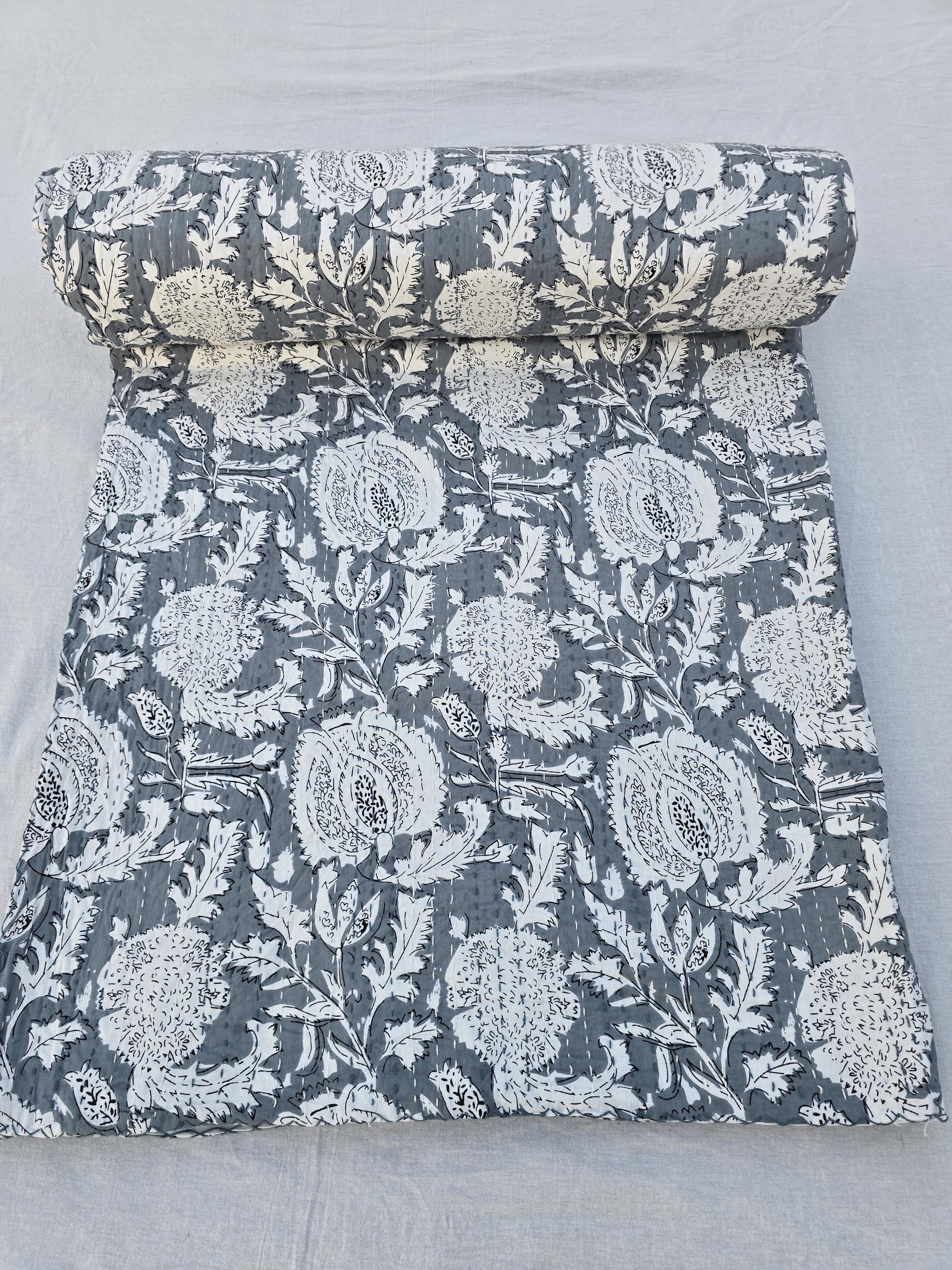 100% cotton and hand Block print kantha quilted, creating a beautiful varied texture.